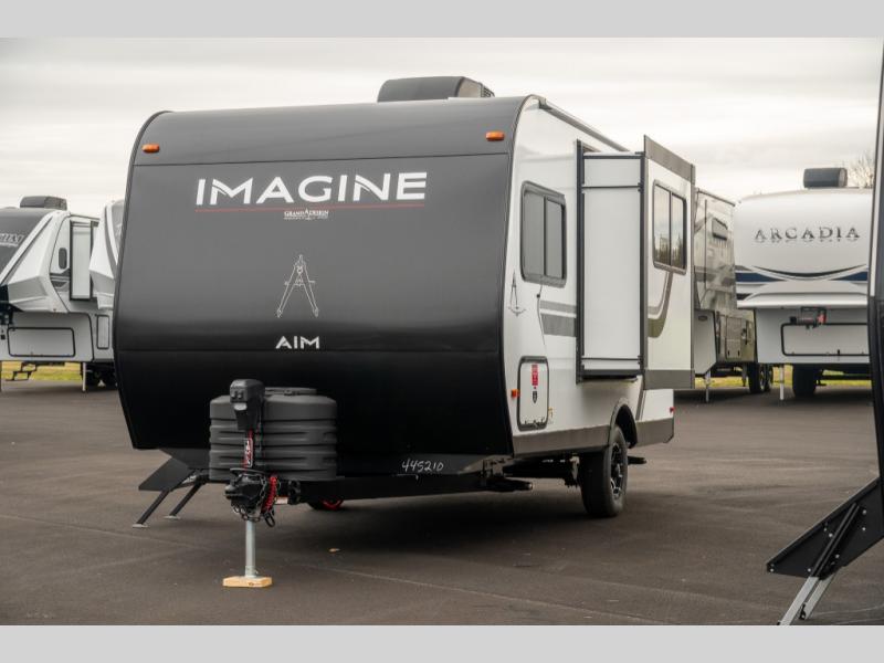 Aim for new destinations in one of these Grand Design Imagine AIM travel trailers! They are constructed to a superior standard with the 4-Seasons Protection Package that features a heated and enclosed underbelly with suspended tanks, a moisture barrier floor enclosure, a double insulated roof and front wall, and more. There is backup camera prep outside, along with a universal docking station, and a power tongue jack. You are sure to feel at home with residential cabinetry, premium window treatments, residential countertops, and a spacious walk-in shower to name a few comforts. The on-demand tankless water heater is a feature you won't want to camp without and the hi-definition LED TV will ensure you'll never go bored on rainy days. Each model also comes with four AIM packages; the Peace of Mind Package, The Ultimate Power Package, The 4-Season Protection Package, and the Solar Package!