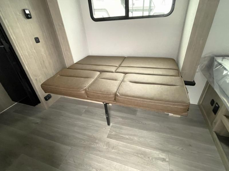 Comfortable Sleeping Arrangements: Front queen bed and roll-over sleeper sofa with storage drawers provide cozy and functional spaces for rest.