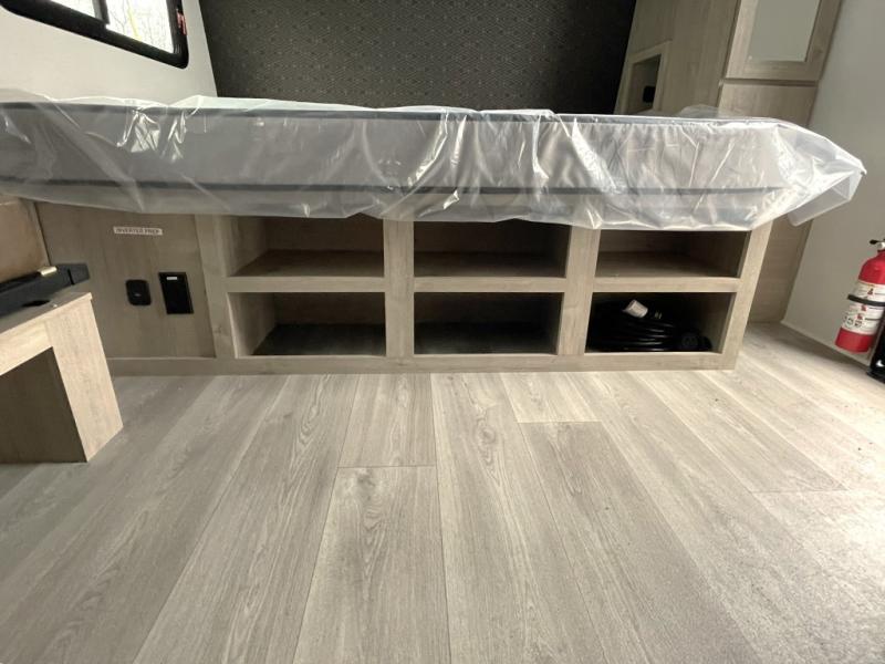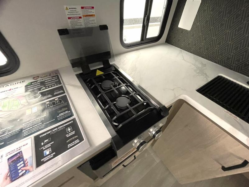 Grand Design Imagine AIM travel trailers are built with a 4-Seasons Protection Package, featuring a heated and enclosed underbelly with suspended tanks, moisture barrier floor enclosure, double insulated roof and front wall, and more. Inside, enjoy residential cabinetry, premium window treatments, residential countertops, and a spacious walk-in shower. On-demand tankless water heater keeps your water hot whenever you need it, and the hi-definition LED TV ensures entertainment on rainy days.
