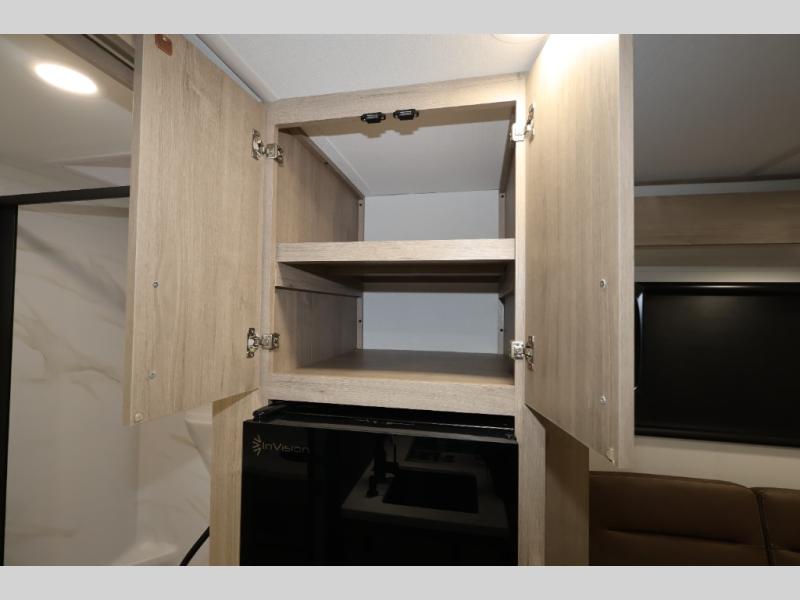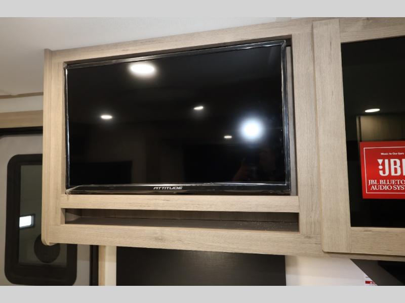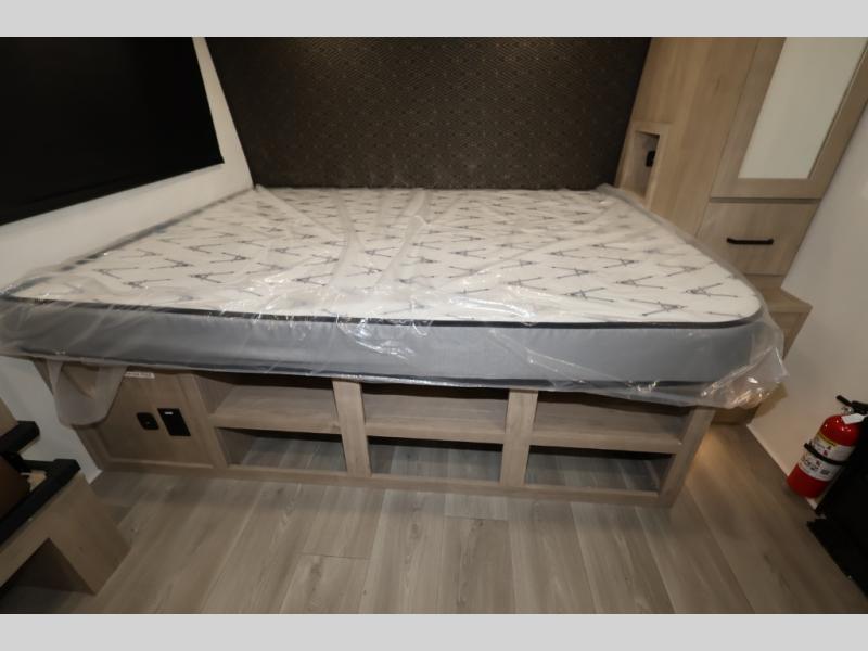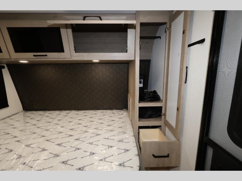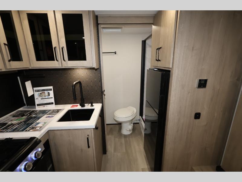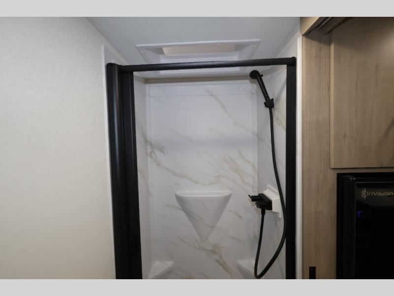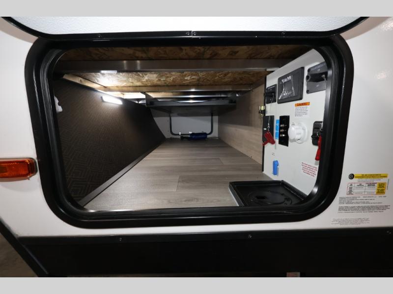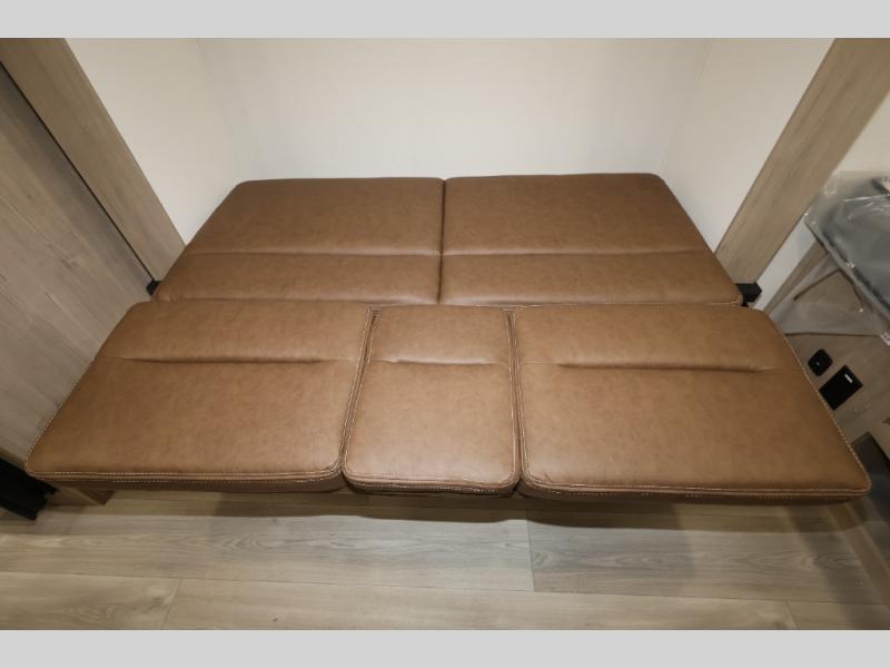 Pack your bags and head out on a fun camping trip in this travel trailer! The front queen bed offers a comfortable place to sleep at night, as well as the roll-over sleeper sofa slide with shoe storage. You can make meals on the cooktop or in the convection microwave. The full rear bathroom has a walk-in shower with an oversized vanity to easily get ready each day. Outside, you'll find a spray port, an unobstructed pass-thru storage, and an interior/exterior table to use at your convenience.