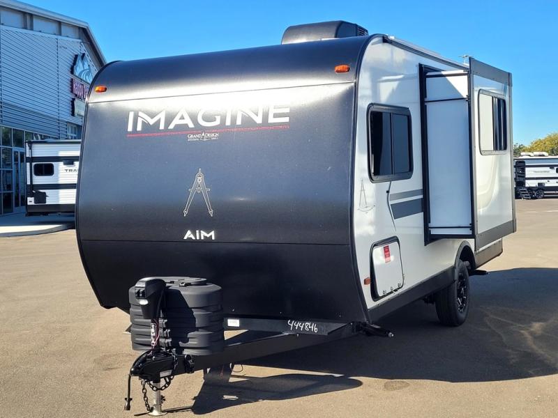 Aim for new destinations in one of these Grand Design Imagine AIM travel trailers! They are constructed to a superior standard with the 4-Seasons Protection Package that features a heated and enclosed underbelly with suspended tanks, a moisture barrier floor enclosure, a double insulated roof and front wall, and more. There is backup camera prep outside, along with a universal docking station, and a power tongue jack. You are sure to feel at home with residential cabinetry, premium window treatments, residential countertops, and a spacious walk-in shower to name a few comforts. The on-demand tankless water heater is a feature you won't want to camp without and the hi-definition LED TV will ensure you'll never go bored on rainy days. Each model also comes with four AIM packages; the Peace of Mind Package, The Ultimate Power Package, The 4-Season Protection Package, and the Solar Package!