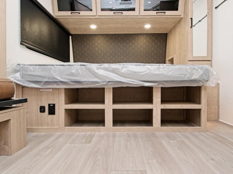 You’ll also enjoy smart exterior features like backup camera prep, a universal docking station, and a power tongue jack for easy setup.