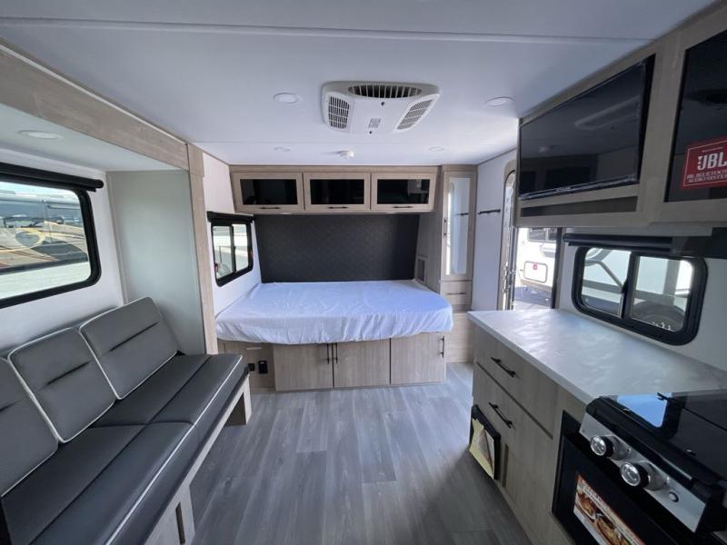 Hit the road with the 2026 Grand Design Imagine AIM 16MLA, ideal for families or couples seeking adventure and comfort. The front queen bed provides a restful night’s sleep, while the sofa slide with shoe storage adds flexible living and sleeping space. Meal prep is a breeze with the cooktop and convection microwave, and the full rear bathroom with walk-in shower and oversized vanity makes getting ready easy and convenient. Enjoy meals or work at the interior/exterior table, and keep your gear organized in the unobstructed pass-through storage. The spray port makes outdoor cleanup simple after a day of adventure.