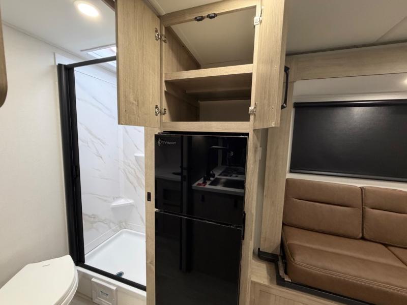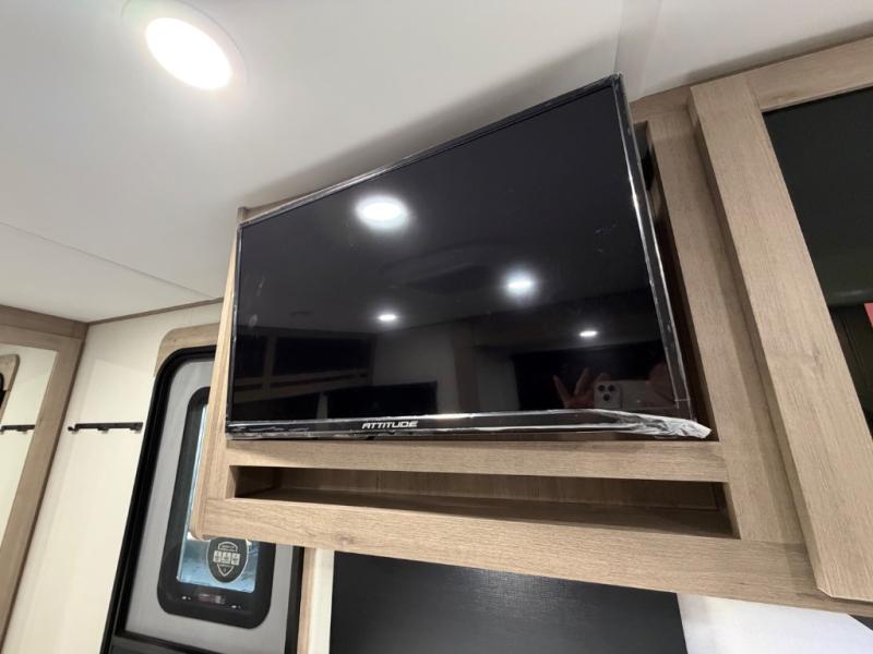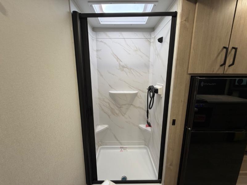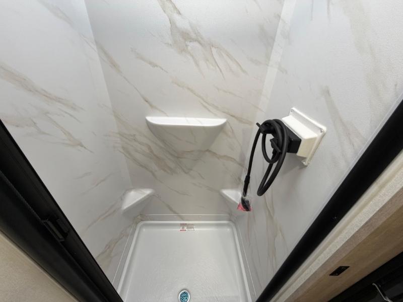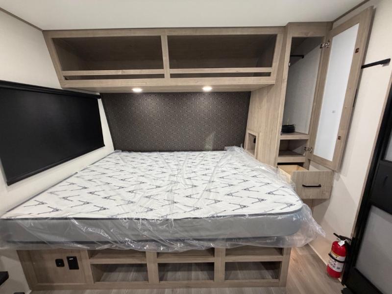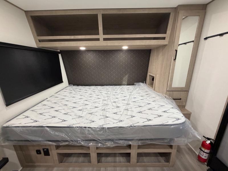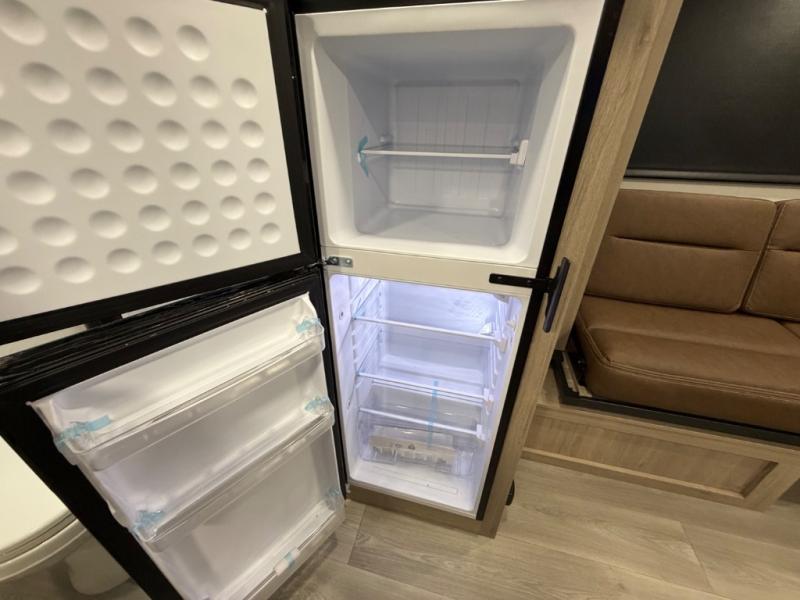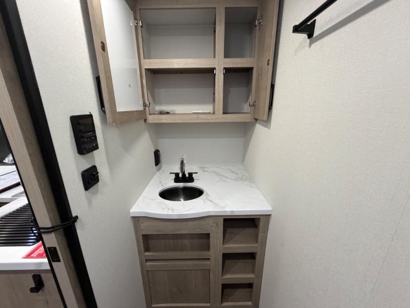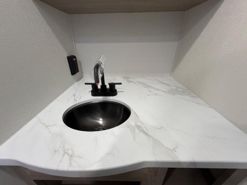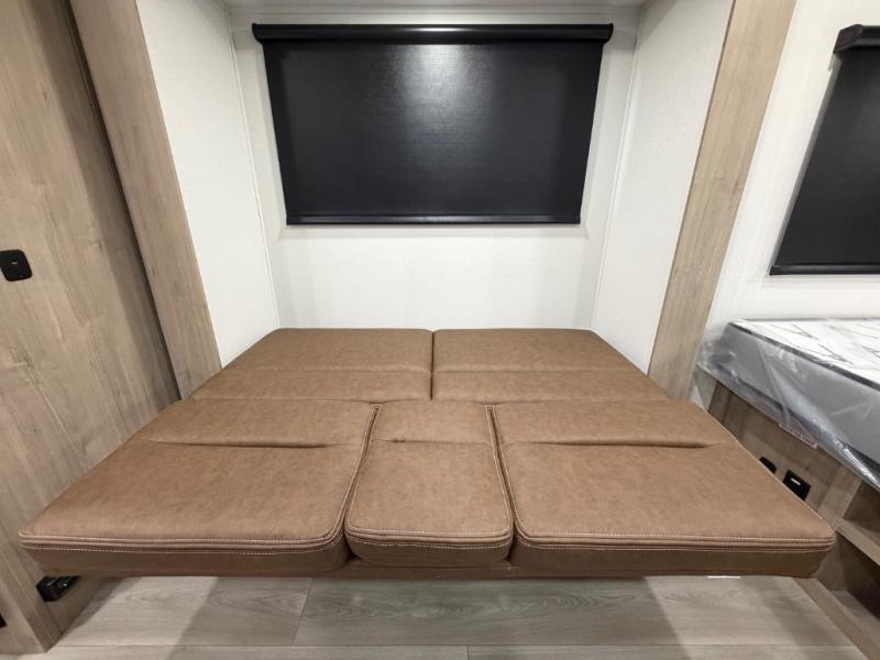 Pack your bags and head out on a fun camping trip in this travel trailer! The front queen bed offers a comfortable place to sleep at night, as well as the roll-over sleeper sofa slide with shoe storage. You can make meals on the cooktop or in the convection microwave. The full rear bathroom has a walk-in shower with an oversized vanity to easily get ready each day. Outside, you'll find a spray port, an unobstructed pass-thru storage, and an interior/exterior table to use at your convenience.