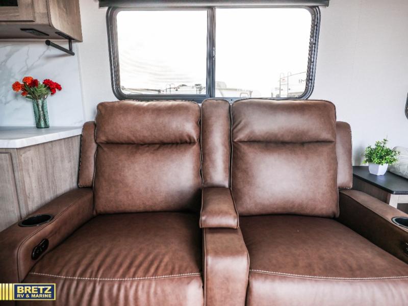 Aim for new destinations in one of these Grand Design Imagine AIM travel trailers! They are constructed to a superior standard with the 4-Seasons Protection Package that features a heated and enclosed underbelly with suspended tanks, a moisture barrier floor enclosure, a double insulated roof and front wall, and more. There is backup camera prep outside, along with a universal docking station, and a power tongue jack. You are sure to feel at home with residential cabinetry, premium window treatments, residential countertops, and a spacious walk-in shower to name a few comforts. The on-demand tankless water heater is a feature you won't want to camp without and the hi-definition LED TV will ensure you'll never go bored on rainy days. Each model also comes with four AIM packages; the Peace of Mind Package, The Ultimate Power Package, The 4-Season Protection Package, and the Solar Package!