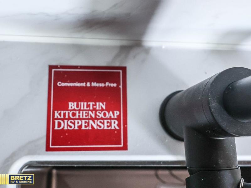 Pack your bags and head out on a fun camping trip in this travel trailer! The front queen bed offers a comfortable place to sleep at after taking off your footwear and place them in the shoe storage. You can make meals on the cooktop or in the convection microwave. The full rear corner bathroom has a walk-in shower with an oversized vanity to easily get ready each day. Outside, you'll find a spray port, an unobstructed pass-thru storage, and an interior/exterior table to use at your convenience.