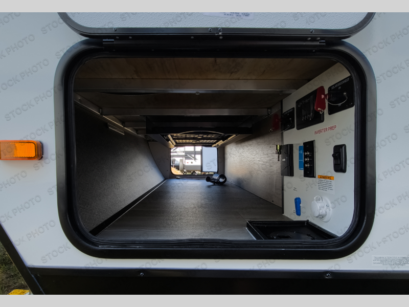 Pack your bags and head out on a fun camping trip in this travel trailer! The front queen bed offers a comfortable place to sleep at after taking off your footwear and place them in the shoe storage. You can make meals on the cooktop or in the convection microwave. The full rear corner bathroom has a walk-in shower with an oversized vanity to easily get ready each day. Outside, you'll find a spray port, an unobstructed pass-thru storage, and an interior/exterior table to use at your convenience.