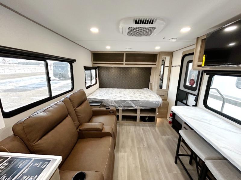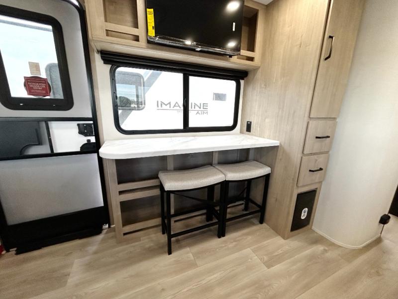 Aim for new destinations in one of these Grand Design Imagine AIM travel trailers! They are constructed to a superior standard with the 4-Seasons Protection Package that features a heated and enclosed underbelly with suspended tanks, a moisture barrier floor enclosure, a double insulated roof and front wall, and more. There is backup camera prep outside, along with a universal docking station, and a power tongue jack. You are sure to feel at home with residential cabinetry, premium window treatments, residential countertops, and a spacious walk-in shower to name a few comforts. The on-demand tankless water heater is a feature you won't want to camp without and the hi-definition LED TV will ensure you'll never go bored on rainy days. Each model also comes with four AIM packages; the Peace of Mind Package, The Ultimate Power Package, The 4-Season Protection Package, and the Solar Package!