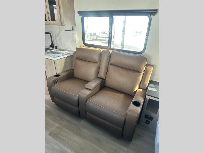 Aim for new destinations in one of these Grand Design Imagine AIM travel trailers! They are constructed to a superior standard with the 4-Seasons Protection Package that features a heated and enclosed underbelly with suspended tanks, a moisture barrier floor enclosure, a double insulated roof and front wall, and more. There is backup camera prep outside, along with a universal docking station, and a power tongue jack. You are sure to feel at home with residential cabinetry, premium window treatments, residential countertops, and a spacious walk-in shower to name a few comforts. The on-demand tankless water heater is a feature you won't want to camp without and the hi-definition LED TV will ensure you'll never go bored on rainy days. Each model also comes with four AIM packages; the Peace of Mind Package, The Ultimate Power Package, The 4-Season Protection Package, and the Solar Package!