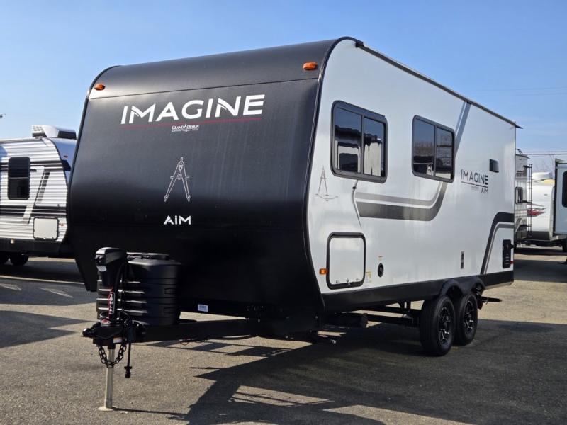 Aim for new destinations in one of these Grand Design Imagine AIM travel trailers! They are constructed to a superior standard with the 4-Seasons Protection Package that features a heated and enclosed underbelly with suspended tanks, a moisture barrier floor enclosure, a double insulated roof and front wall, and more. There is backup camera prep outside, along with a universal docking station, and a power tongue jack. You are sure to feel at home with residential cabinetry, premium window treatments, residential countertops, and a spacious walk-in shower to name a few comforts. The on-demand tankless water heater is a feature you won't want to camp without and the hi-definition LED TV will ensure you'll never go bored on rainy days. Each model also comes with four AIM packages; the Peace of Mind Package, The Ultimate Power Package, The 4-Season Protection Package, and the Solar Package!