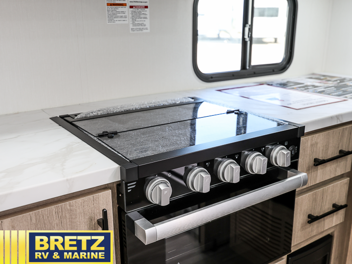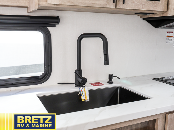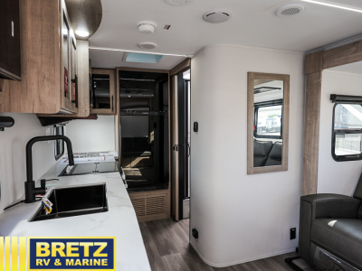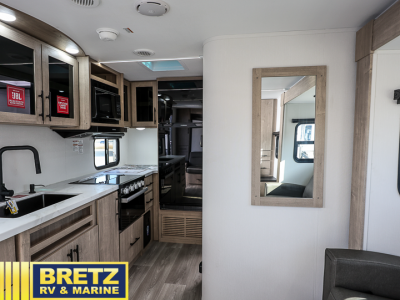 The Murphy bed is the eye-catching feature on this Imagine XLS travel trailer! Not only can it fold away in the morning to reveal a sofa for lounging, but it will also provide you with drawer storage under the sofa. Another functional feature is the theater dinette with a removable table in front or you can choose the optional U-shaped dinette if you like to gather around for game night. It rests on the single slide so that there is more floor space, and it offers you great comfort while you dine across from the LED HDTV. A full bathroom will keep you clean and fresh with its residential walk-in shower, skylight, linen closet, vanity, toilet, and power vent fan.