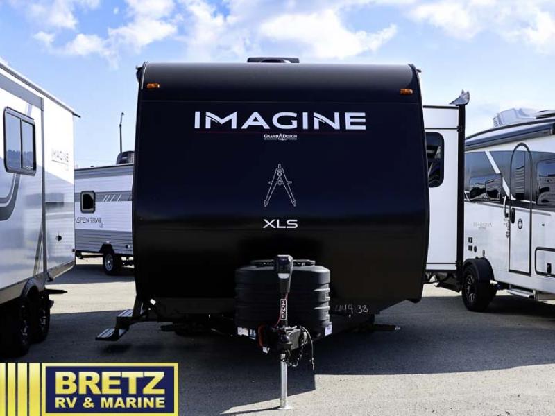 Let your imagination run wild with the possibilities that the Grand Design Imagine XLS travel trailer can provide! The Imagine XLS has been built with oversized tank capacities, an extra-large 2" fresh water drain valve, a ducted A/C system, a power tongue jack, and a heated and enclosed underbelly with suspended tanks. There is a designated heat duct to the subfloor and a residential ductless heating system throughout. For outdoor adventures, the electric awning with LED lights will enable you to stay protected, and the Tuff-Ply pass-thru flooring will withstand your many adventures. You will also love the XLS Solar Package that comes with a 200W roof mounted solar panel, a 30 Amp charge controller, a 12V 10 cu. ft. refrigerator, and roof mounted quick connect plugs!