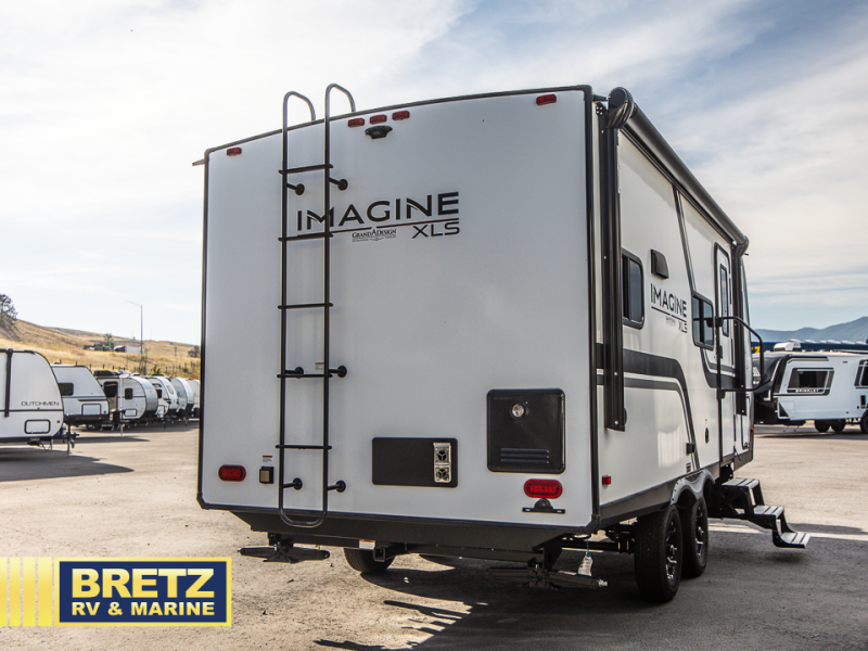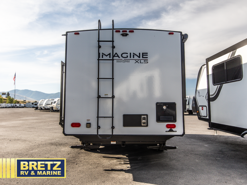 Let your imagination run wild with the possibilities that the Grand Design Imagine XLS travel trailer can provide! The Imagine XLS has been built with oversized tank capacities, an extra-large 2" fresh water drain valve, a ducted A/C system, a power tongue jack, and a heated and enclosed underbelly with suspended tanks. There is a designated heat duct to the subfloor and a residential ductless heating system throughout. For outdoor adventures, the electric awning with LED lights will enable you to stay protected, and the Tuff-Ply pass-thru flooring will withstand your many adventures. You will also love the XLS Solar Package that comes with a 200W roof mounted solar panel, a 30 Amp charge controller, a 12V 10 cu. ft. refrigerator, and roof mounted quick connect plugs!