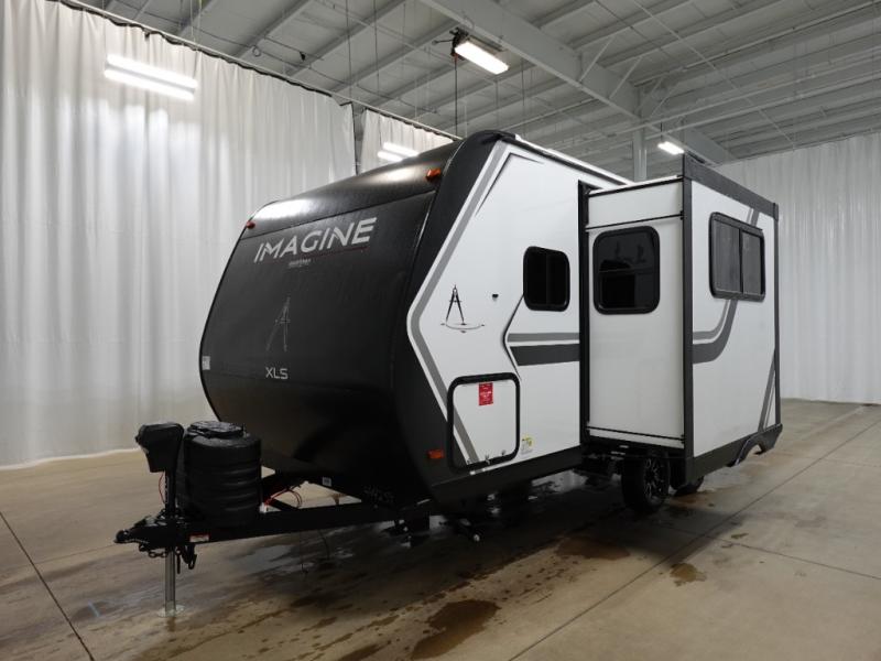 Let your imagination run wild with the possibilities that the Grand Design Imagine XLS travel trailer can provide! The Imagine XLS has been built with oversized tank capacities, an extra-large 2" fresh water drain valve, a ducted A/C system, a power tongue jack, and a heated and enclosed underbelly with suspended tanks. There is a designated heat duct to the subfloor and a residential ductless heating system throughout. For outdoor adventures, the electric awning with LED lights will enable you to stay protected, and the Tuff-Ply pass-thru flooring will withstand your many adventures. You will also love the XLS Solar Package that comes with a 200W roof mounted solar panel, a 30 Amp charge controller, a 12V 10 cu. ft. refrigerator, and roof mounted quick connect plugs!