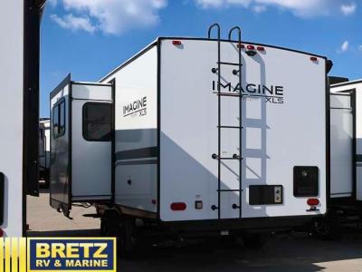 Let your imagination run wild with the possibilities that the Grand Design Imagine XLS travel trailer can provide! The Imagine XLS has been built with oversized tank capacities, an extra-large 2" fresh water drain valve, a ducted A/C system, a power tongue jack, and a heated and enclosed underbelly with suspended tanks. There is a designated heat duct to the subfloor and a residential ductless heating system throughout. For outdoor adventures, the electric awning with LED lights will enable you to stay protected, and the Tuff-Ply pass-thru flooring will withstand your many adventures. You will also love the XLS Solar Package that comes with a 200W roof mounted solar panel, a 30 Amp charge controller, a 12V 10 cu. ft. refrigerator, and roof mounted quick connect plugs!