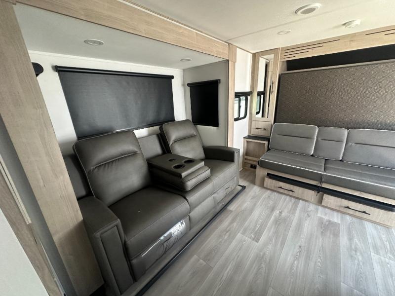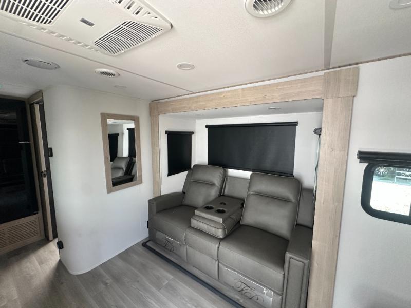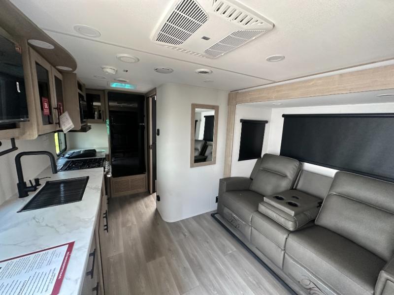 Let your imagination run wild with the possibilities that the Grand Design Imagine XLS travel trailer can provide! The Imagine XLS has been built with oversized tank capacities, an extra-large 2" fresh water drain valve, a ducted A/C system, a power tongue jack, and a heated and enclosed underbelly with suspended tanks. There is a designated heat duct to the subfloor and a residential ductless heating system throughout. For outdoor adventures, the electric awning with LED lights will enable you to stay protected, and the Tuff-Ply pass-thru flooring will withstand your many adventures. You will also love the XLS Solar Package that comes with a 200W roof mounted solar panel, a 30 Amp charge controller, a 12V 10 cu. ft. refrigerator, and roof mounted quick connect plugs!