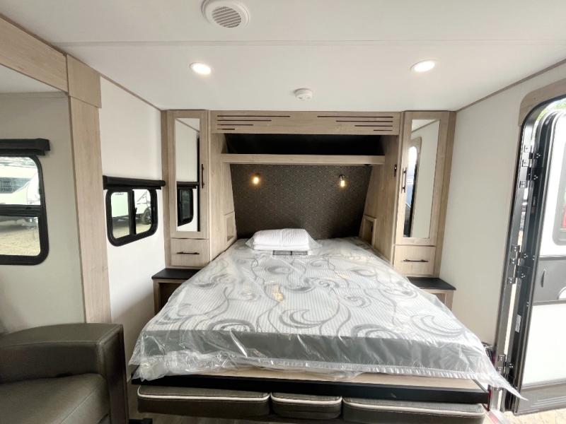 Let your imagination run wild with the possibilities that the Grand Design Imagine XLS travel trailer can provide! The Imagine XLS has been built with oversized tank capacities, an extra-large 2" fresh water drain valve, a ducted A/C system, a power tongue jack, and a heated and enclosed underbelly with suspended tanks. There is a designated heat duct to the subfloor and a residential ductless heating system throughout. For outdoor adventures, the electric awning with LED lights will enable you to stay protected, and the Tuff-Ply pass-thru flooring will withstand your many adventures. You will also love the XLS Solar Package that comes with a 200W roof mounted solar panel, a 30 Amp charge controller, a 12V 10 cu. ft. refrigerator, and roof mounted quick connect plugs!