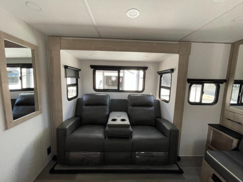 Let your imagination run wild with the possibilities that the Grand Design Imagine XLS travel trailer can provide! The Imagine XLS has been built with oversized tank capacities, an extra-large 2" fresh water drain valve, a ducted A/C system, a power tongue jack, and a heated and enclosed underbelly with suspended tanks. There is a designated heat duct to the subfloor and a residential ductless heating system throughout. For outdoor adventures, the electric awning with LED lights will enable you to stay protected, and the Tuff-Ply pass-thru flooring will withstand your many adventures. You will also love the XLS Solar Package that comes with a 200W roof mounted solar panel, a 30 Amp charge controller, a 12V 10 cu. ft. refrigerator, and roof mounted quick connect plugs!