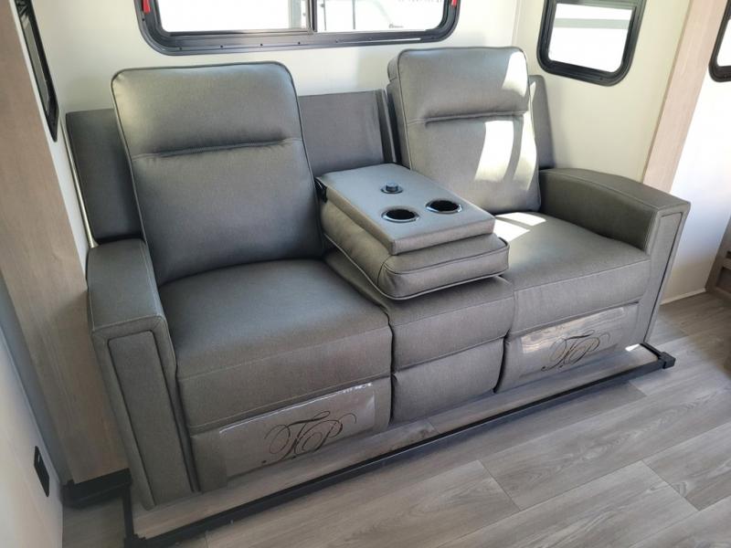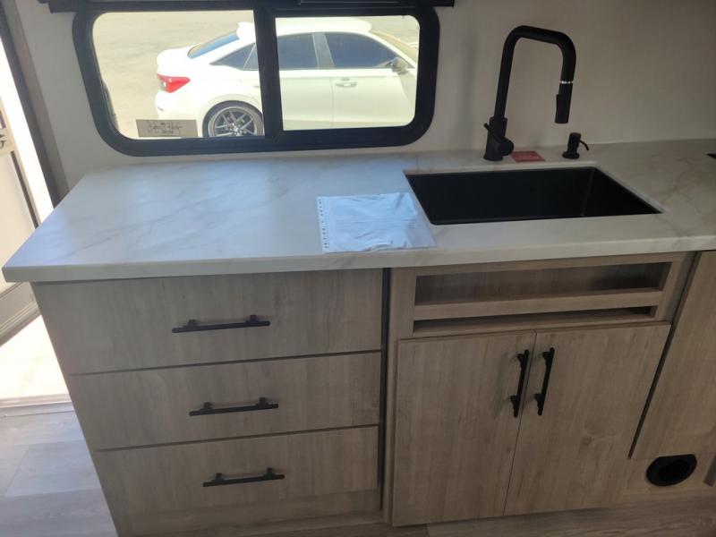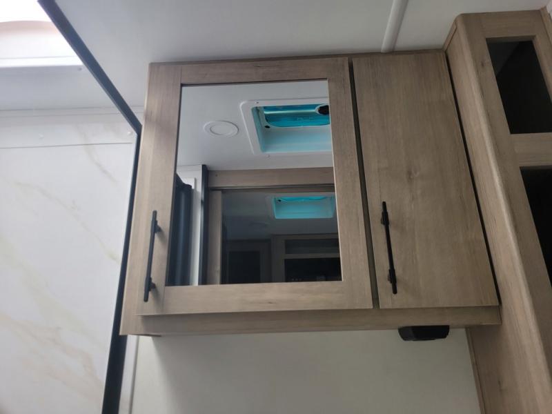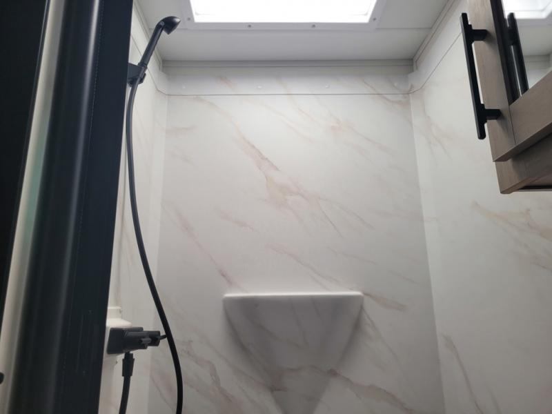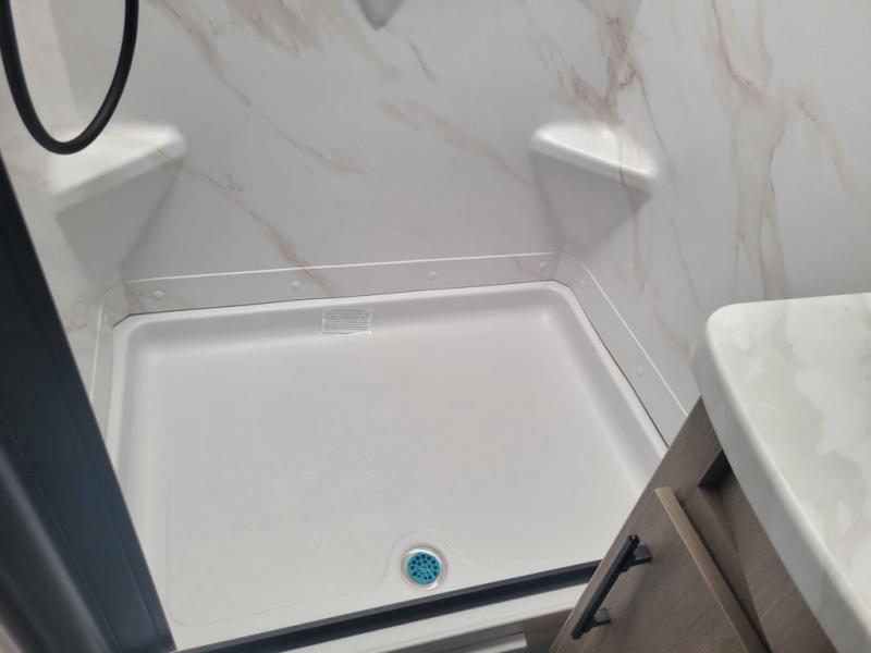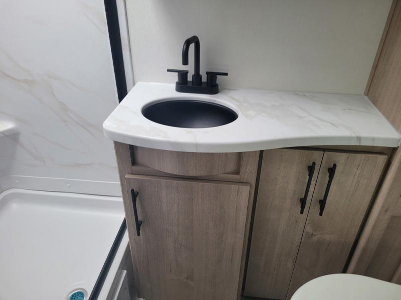 The Murphy bed is the eye-catching feature on this Imagine XLS travel trailer! Not only can it fold away in the morning to reveal a sofa for lounging, but it will also provide you with drawer storage under the sofa. Another functional feature is the theater dinette with a removable table in front or you can choose the optional U-shaped dinette if you like to gather around for game night. It rests on the single slide so that there is more floor space, and it offers you great comfort while you dine across from the LED HDTV. A full bathroom will keep you clean and fresh with its residential walk-in shower, skylight, linen closet, vanity, toilet, and power vent fan.