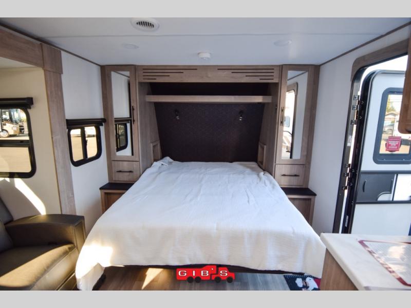 The Murphy bed is the eye-catching feature on this Imagine XLS travel trailer! Not only can it fold away in the morning to reveal a sofa for lounging, but it will also provide you with drawer storage under the sofa. Another functional feature is the theater dinette with a removable table in front or you can choose the optional U-shaped dinette if you like to gather around for game night. It rests on the single slide so that there is more floor space, and it offers you great comfort while you dine across from the LED HDTV. A full bathroom will keep you clean and fresh with its residential walk-in shower, skylight, linen closet, vanity, toilet, and power vent fan.