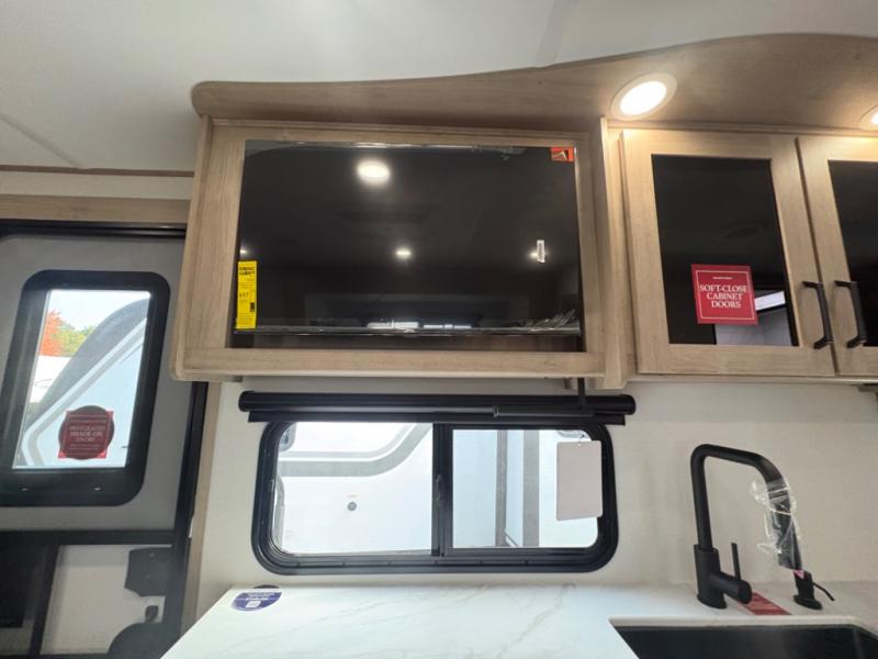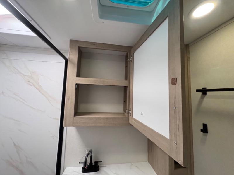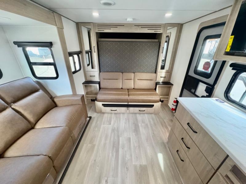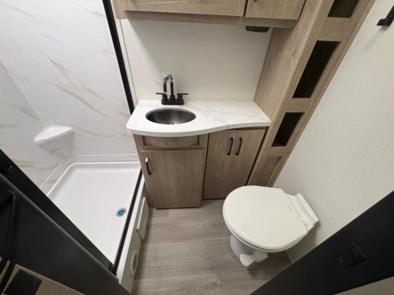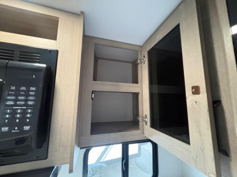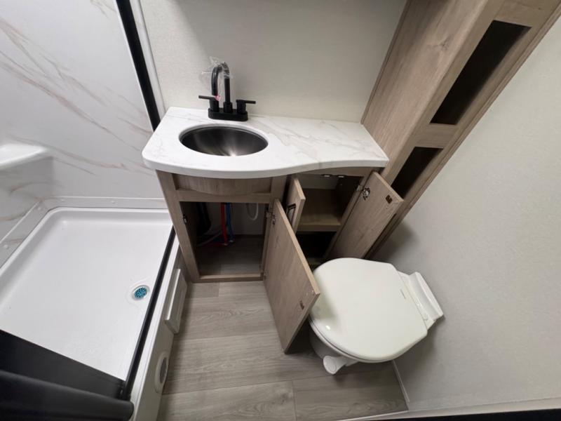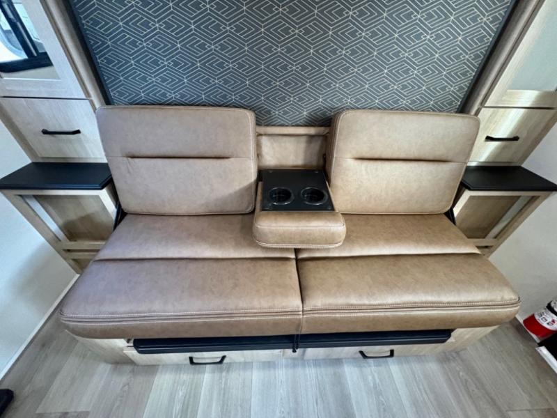 The Murphy bed is the eye-catching feature on this Imagine XLS travel trailer! Not only can it fold away in the morning to reveal a sofa for lounging, but it will also provide you with drawer storage under the sofa. Another functional feature is the theater dinette with a removable table in front or you can choose the optional U-shaped dinette if you like to gather around for game night. It rests on the single slide so that there is more floor space, and it offers you great comfort while you dine across from the LED HDTV. A full bathroom will keep you clean and fresh with its residential walk-in shower, skylight, linen closet, vanity, toilet, and power vent fan.