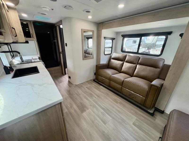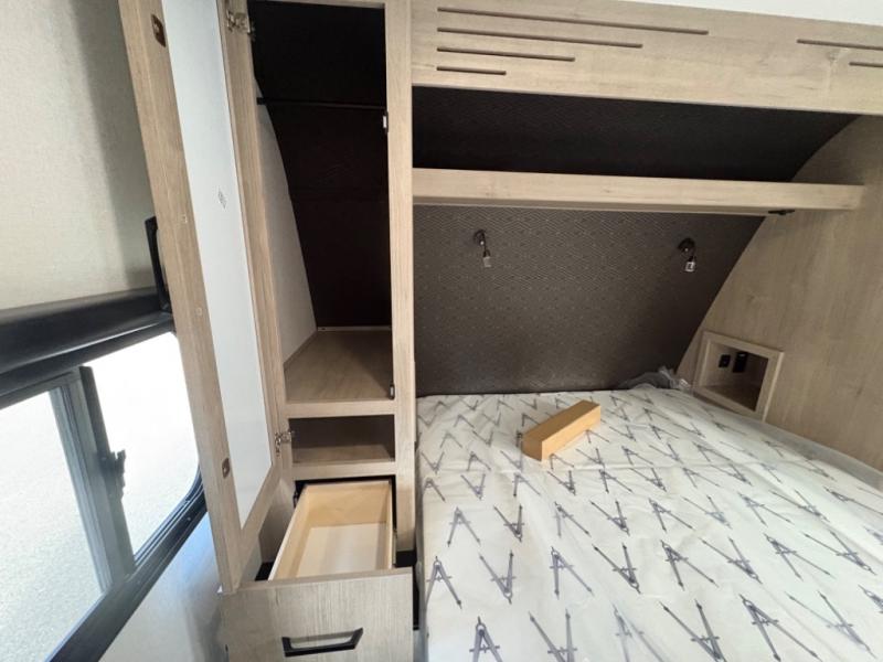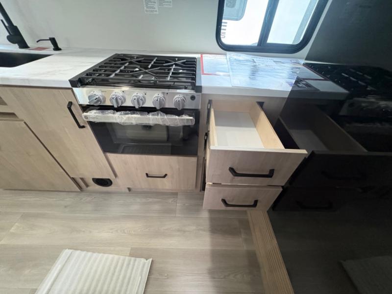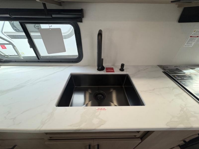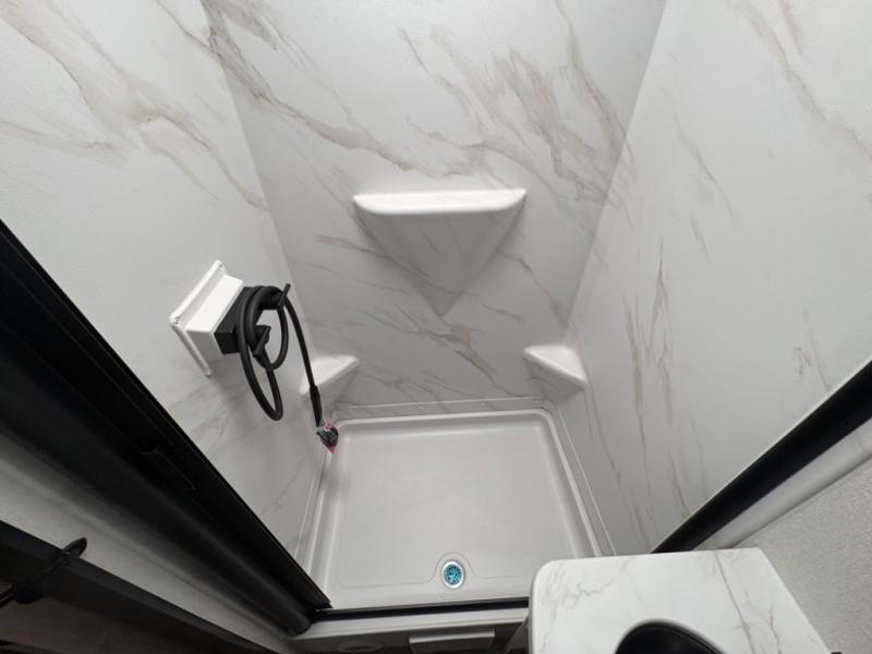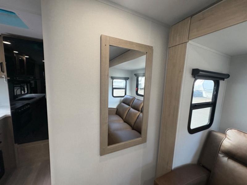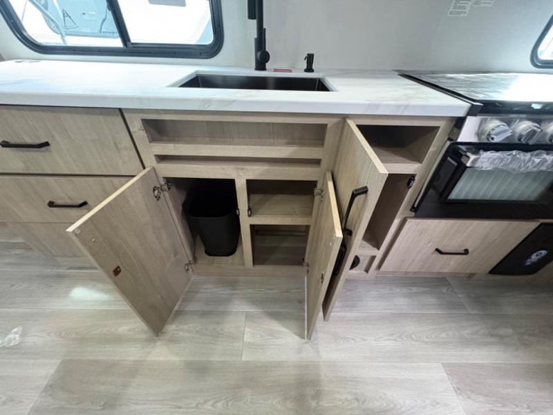 The Murphy bed is the eye-catching feature on this Imagine XLS travel trailer! Not only can it fold away in the morning to reveal a sofa for lounging, but it will also provide you with drawer storage under the sofa. Another functional feature is the theater dinette with a removable table in front or you can choose the optional U-shaped dinette if you like to gather around for game night. It rests on the single slide so that there is more floor space, and it offers you great comfort while you dine across from the LED HDTV. A full bathroom will keep you clean and fresh with its residential walk-in shower, skylight, linen closet, vanity, toilet, and power vent fan.