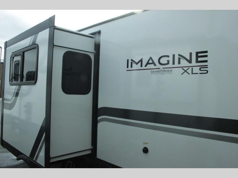 Let your imagination run wild with the possibilities that the Grand Design Imagine XLS travel trailer can provide! The Imagine XLS has been built with oversized tank capacities, an extra-large 2" fresh water drain valve, a ducted A/C system, a power tongue jack, and a heated and enclosed underbelly with suspended tanks. There is a designated heat duct to the subfloor and a residential ductless heating system throughout. For outdoor adventures, the electric awning with LED lights will enable you to stay protected, and the Tuff-Ply pass-thru flooring will withstand your many adventures. You will also love the XLS Solar Package that comes with a 200W roof mounted solar panel, a 30 Amp charge controller, a 12V 10 cu. ft. refrigerator, and roof mounted quick connect plugs!