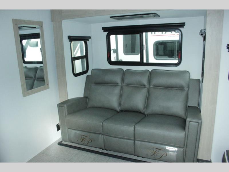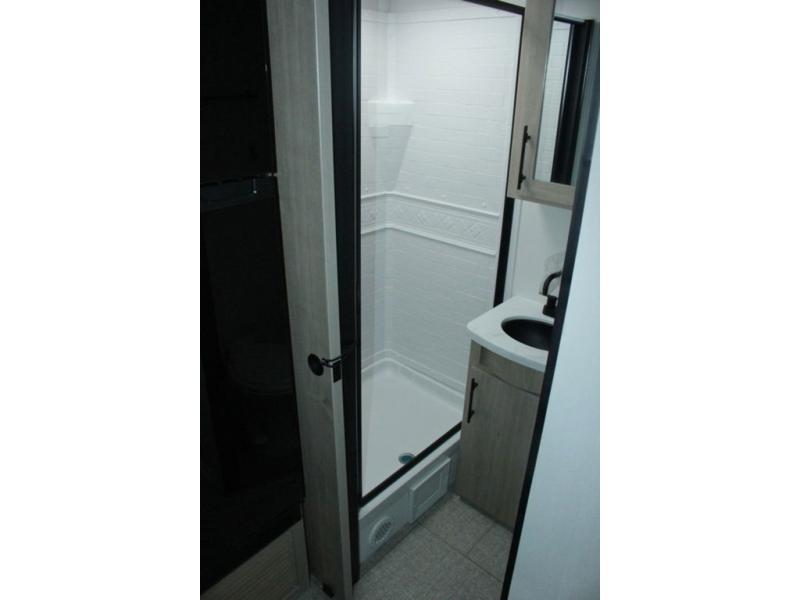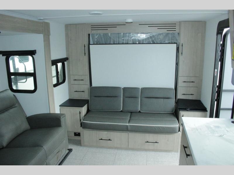 The Murphy bed is the eye-catching feature on this Imagine XLS travel trailer! Not only can it fold away in the morning to reveal a sofa for lounging, but it will also provide you with drawer storage under the sofa. Another functional feature is the theater dinette with a removable table in front or you can choose the optional U-shaped dinette if you like to gather around for game night. It rests on the single slide so that there is more floor space, and it offers you great comfort while you dine across from the LED HDTV. A full bathroom will keep you clean and fresh with its residential walk-in shower, skylight, linen closet, vanity, toilet, and power vent fan.