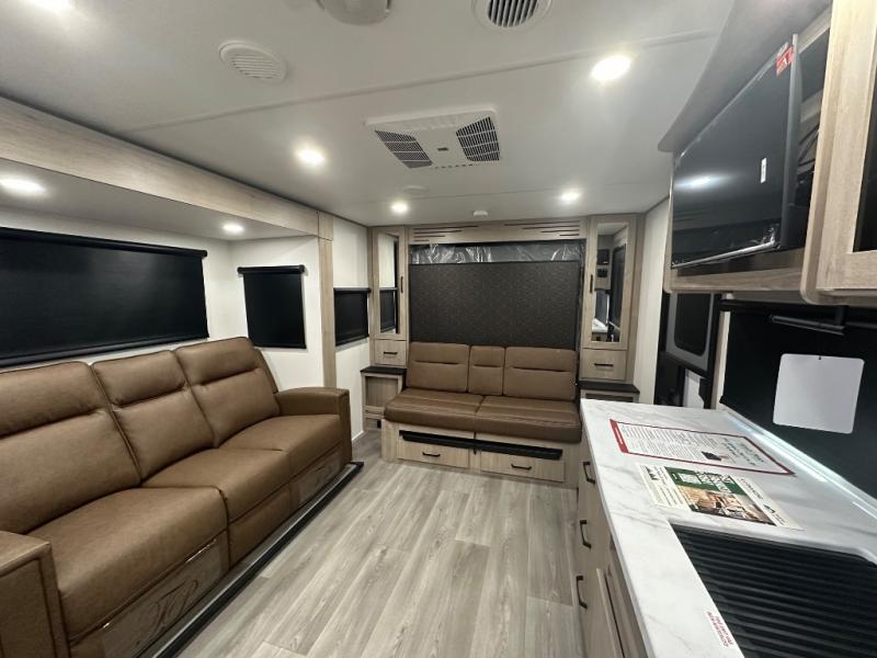 Let your imagination run wild with the possibilities that the Grand Design Imagine XLS travel trailer can provide! The Imagine XLS has been built with oversized tank capacities, an extra-large 2" fresh water drain valve, a ducted A/C system, a power tongue jack, and a heated and enclosed underbelly with suspended tanks. There is a designated heat duct to the subfloor and a residential ductless heating system throughout. For outdoor adventures, the electric awning with LED lights will enable you to stay protected, and the Tuff-Ply pass-thru flooring will withstand your many adventures. You will also love the XLS Solar Package that comes with a 200W roof mounted solar panel, a 30 Amp charge controller, a 12V 10 cu. ft. refrigerator, and roof mounted quick connect plugs!