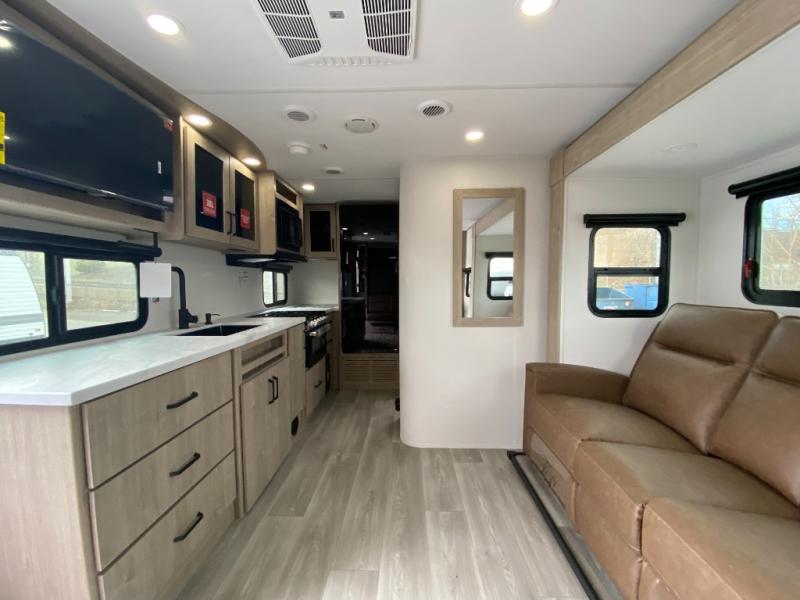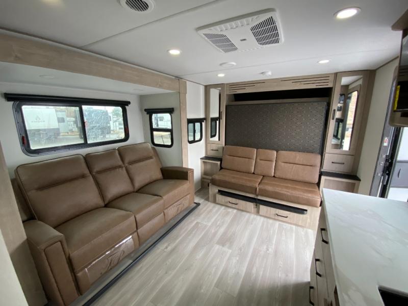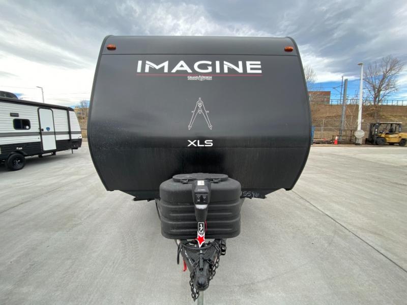 Let your imagination run wild with the possibilities that the Grand Design Imagine XLS travel trailer can provide! The Imagine XLS has been built with oversized tank capacities, an extra-large 2" fresh water drain valve, a ducted A/C system, a power tongue jack, and a heated and enclosed underbelly with suspended tanks. There is a designated heat duct to the subfloor and a residential ductless heating system throughout. For outdoor adventures, the electric awning with LED lights will enable you to stay protected, and the Tuff-Ply pass-thru flooring will withstand your adventures. You will also love the XLS Solar Package that comes with a 200W roof mounted solar panel, a 30 Amp charge controller, a 12V 10 cu. ft. refrigerator, and roof mounted quick connect plugs!