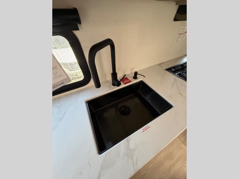 Let your imagination run wild with the possibilities that the Grand Design Imagine XLS travel trailer can provide! The Imagine XLS has been built with oversized tank capacities, an extra-large 2" fresh water drain valve, a ducted A/C system, a power tongue jack, and a heated and enclosed underbelly with suspended tanks. There is a designated heat duct to the subfloor and a residential ductless heating system throughout. For outdoor adventures, the electric awning with LED lights will enable you to stay protected, and the Tuff-Ply pass-thru flooring will withstand your adventures. You will also love the XLS Solar Package that comes with a 200W roof mounted solar panel, a 30 Amp charge controller, a 12V 10 cu. ft. refrigerator, and roof mounted quick connect plugs!