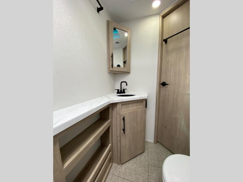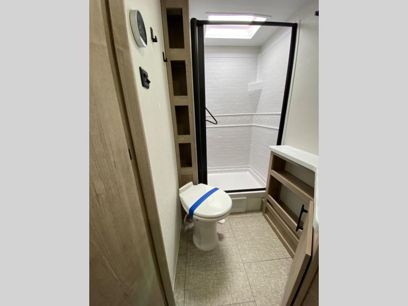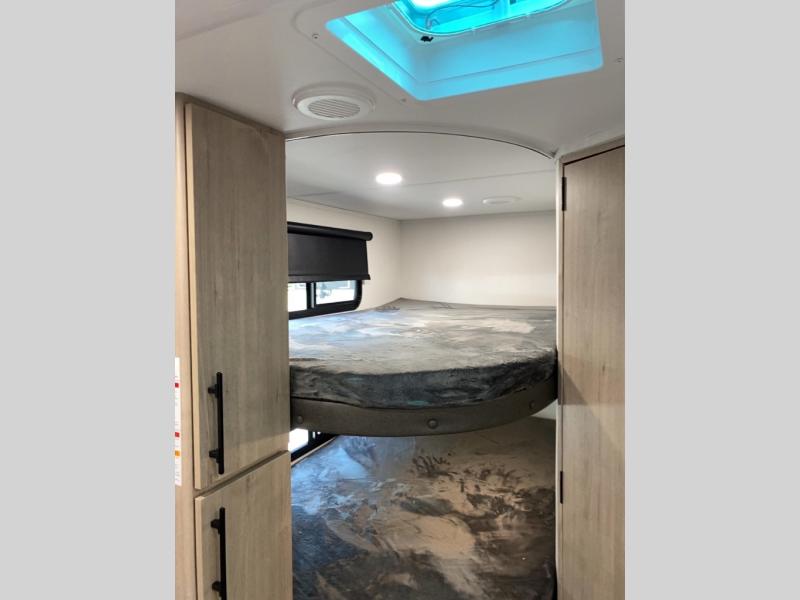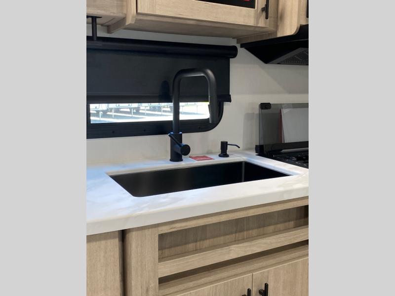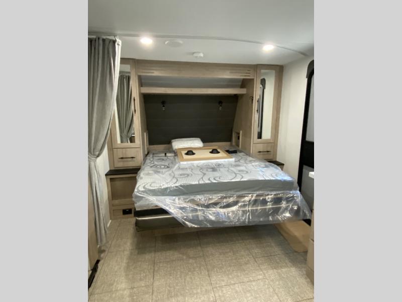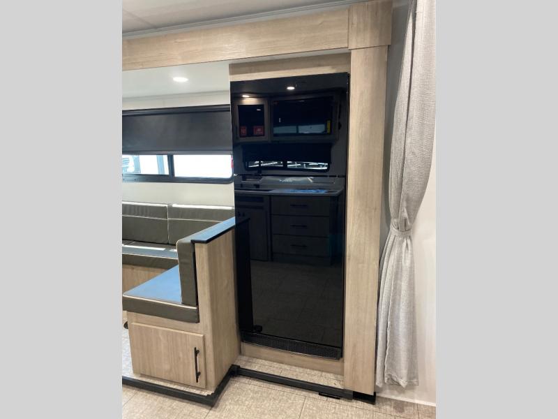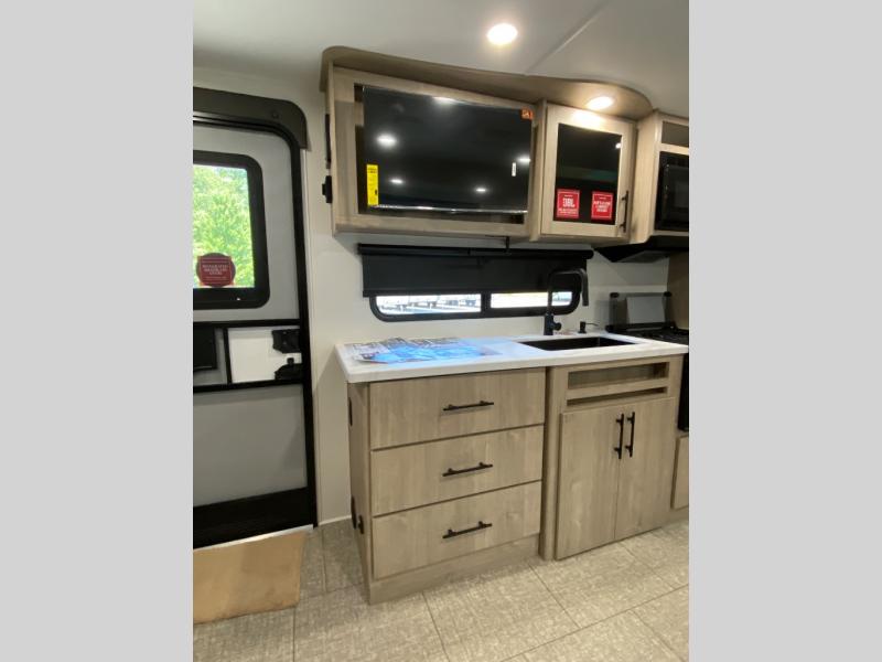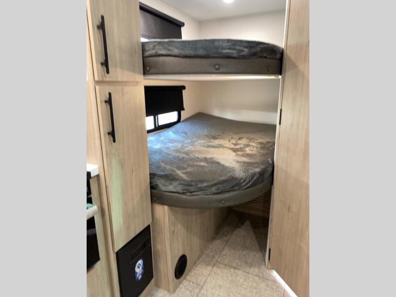 This travel trailer has everything you need for a great vacation! You will never miss home when you see all of the amenities included on this trailer. There is a full bathroom for easy morning routines, a set of 47" x 76" double over double-size bunks with privacy curtains for compact sleeping, a U-shaped dinette for meal times, and a full kitchen with all of the appliances needed for filling meals. You could even switch out the dinette for an optional theater dinette. The front Murphy bed not only provides versatility with a bed to sleep on at night, and a seating area during the day, but also a removable interior/exterior table. In addition to all of that, you'll also find an outdoor griddle and 1.6 cu. ft. refrigerator that you can use when the weather is nice. The unobstructed pass-through storage will be able to store your fishing poles and sports equipment while you travel.