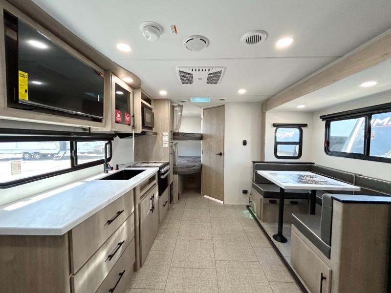 Let your imagination run wild with the possibilities that the Grand Design Imagine XLS travel trailer can provide! The Imagine XLS has been built with oversized tank capacities, an extra-large 2" fresh water drain valve, a ducted A/C system, a power tongue jack, and a heated and enclosed underbelly with suspended tanks. There is a designated heat duct to the subfloor and a residential ductless heating system throughout. For outdoor adventures, the electric awning with LED lights will enable you to stay protected, and the Tuff-Ply pass-thru flooring will withstand your many adventures. You will also love the XLS Solar Package that comes with a 200W roof mounted solar panel, a 40 Amp charge controller, a 12V 10 cu. ft. refrigerator, and roof mounted quick connect plugs!