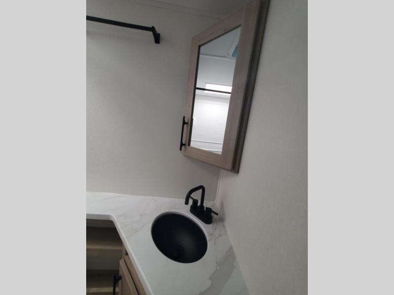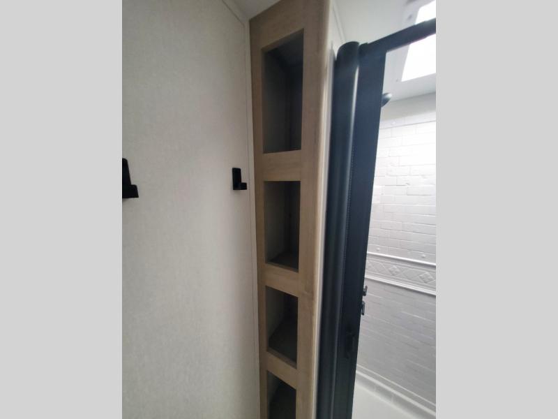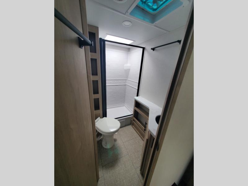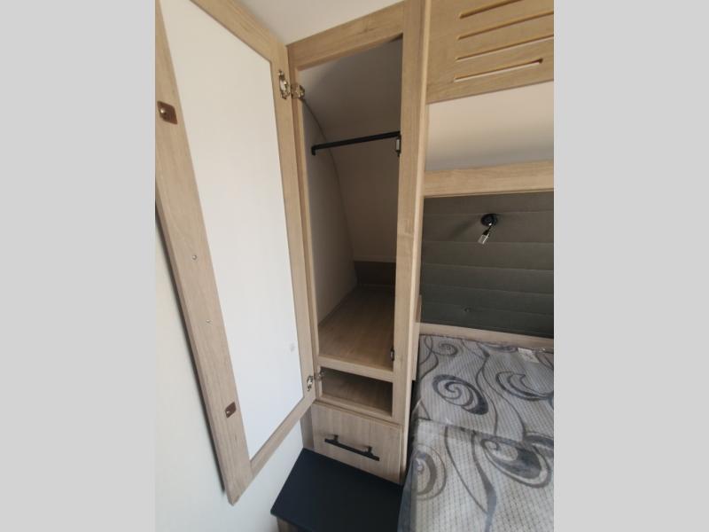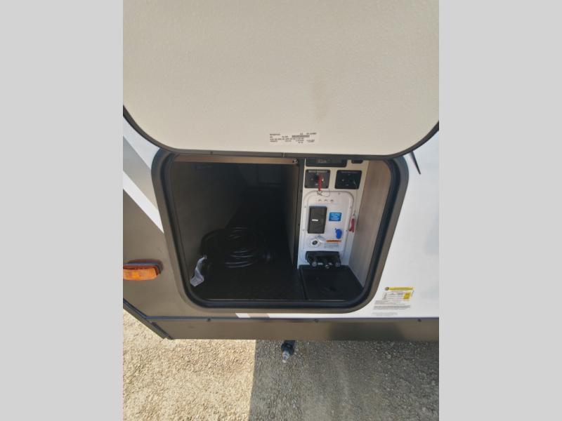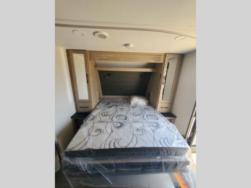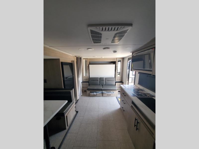 This travel trailer has everything you need for a great vacation! You will never miss home when you see all of the amenities included on this trailer. There is a full bathroom for easy morning routines, a set of 47" x 76" double over double-size bunks with privacy curtains for compact sleeping, a U-shaped dinette for meal times, and a full kitchen with all of the appliances needed for filling meals. You could even switch out the dinette for an optional theater dinette. The front Murphy bed not only provides versatility with a bed to sleep on at night, and a seating area during the day, but also a removable interior/exterior table. In addition to all of that, you'll also find an outdoor griddle and 1.6 cu. ft. refrigerator that you can use when the weather is nice. The unobstructed pass-through storage will be able to store your fishing poles and sports equipment while you travel.