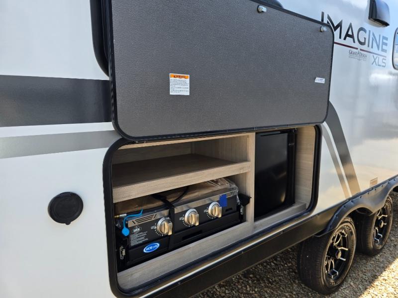 Let your imagination run wild with the possibilities that the Grand Design Imagine XLS travel trailer can provide! The Imagine XLS has been built with oversized tank capacities, an extra-large 2" fresh water drain valve, a ducted A/C system, a power tongue jack, and a heated and enclosed underbelly with suspended tanks. There is a designated heat duct to the subfloor and a residential ductless heating system throughout. For outdoor adventures, the electric awning with LED lights will enable you to stay protected, and the Tuff-Ply pass-thru flooring will withstand your many adventures. You will also love the XLS Solar Package that comes with a 200W roof mounted solar panel, a 40 Amp charge controller, a 12V 10 cu. ft. refrigerator, and roof mounted quick connect plugs!