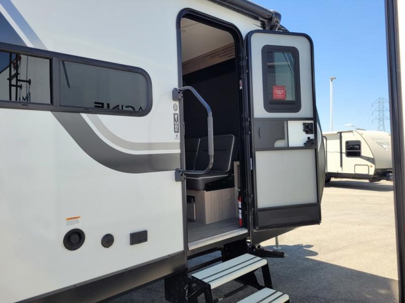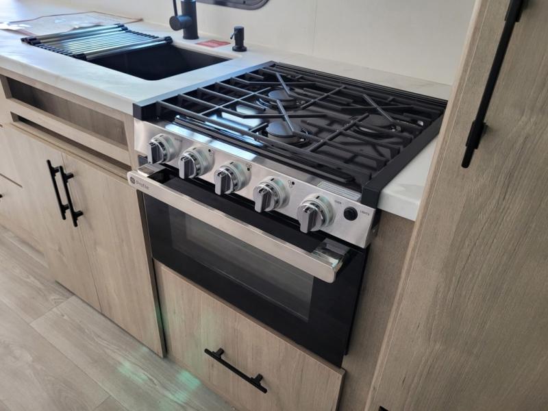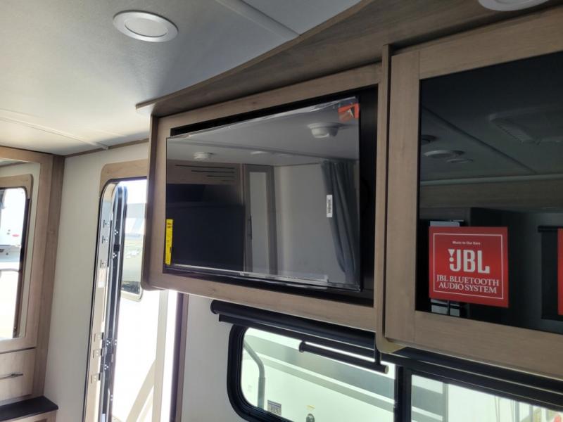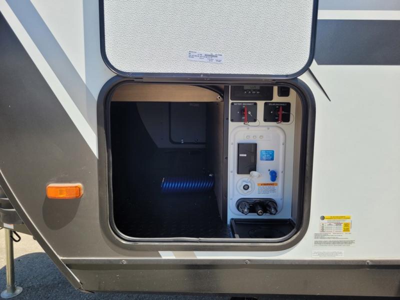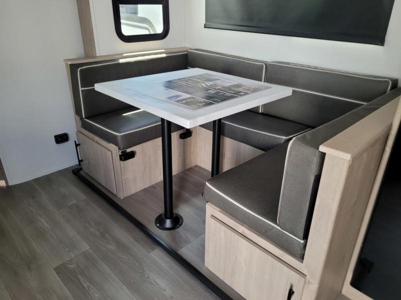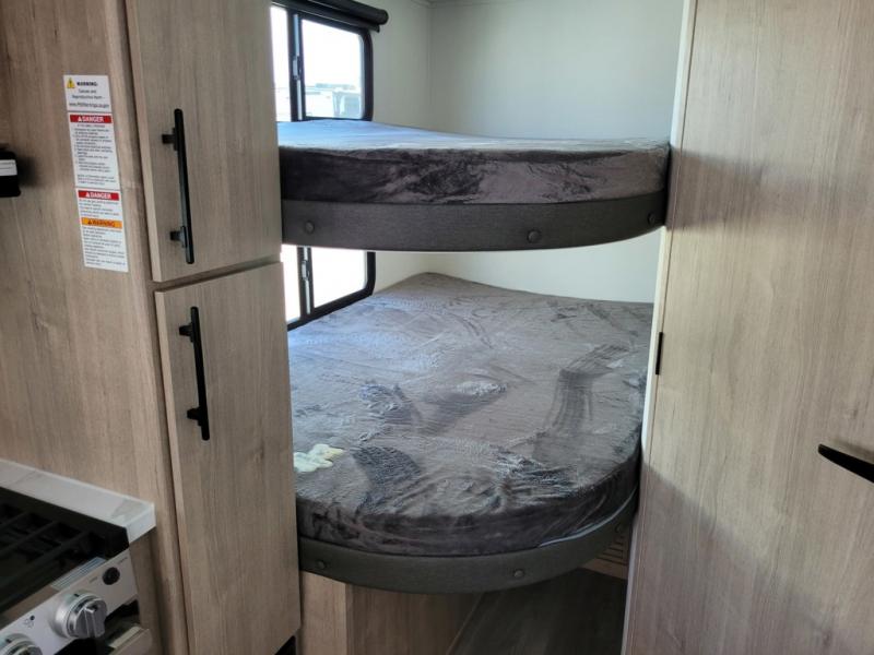 This travel trailer has everything you need for a great vacation! You will never miss home when you see all of the amenities included on this trailer. There is a full bathroom for easy morning routines, a set of 47" x 76" double over double-size bunks with privacy curtains for compact sleeping, a U-shaped dinette for meal times, and a full kitchen with all of the appliances needed for filling meals. You could even switch out the dinette for an optional theater dinette. The front Murphy bed not only provides versatility with a bed to sleep on at night, and a seating area during the day, but also a removable interior/exterior table. In addition to all of that, you'll also find an outdoor griddle and 1.6 cu. ft. refrigerator that you can use when the weather is nice. The unobstructed pass-through storage will be able to store your fishing poles and sports equipment while you travel.