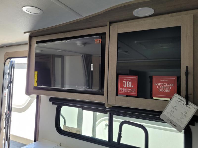 Let your imagination run wild with the possibilities that the Grand Design Imagine XLS travel trailer can provide! The Imagine XLS has been built with oversized tank capacities, an extra-large 2" fresh water drain valve, a ducted A/C system, a power tongue jack, and a heated and enclosed underbelly with suspended tanks. There is a designated heat duct to the subfloor and a residential ductless heating system throughout. For outdoor adventures, the electric awning with LED lights will enable you to stay protected, and the Tuff-Ply pass-thru flooring will withstand your many adventures. You will also love the XLS Solar Package that comes with a 200W roof mounted solar panel, a 40 Amp charge controller, a 12V 10 cu. ft. refrigerator, and roof mounted quick connect plugs!
