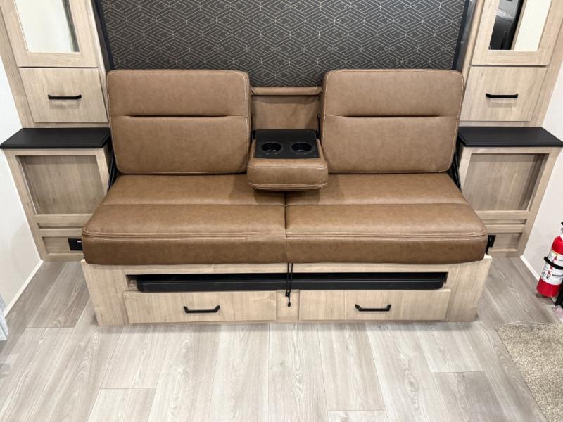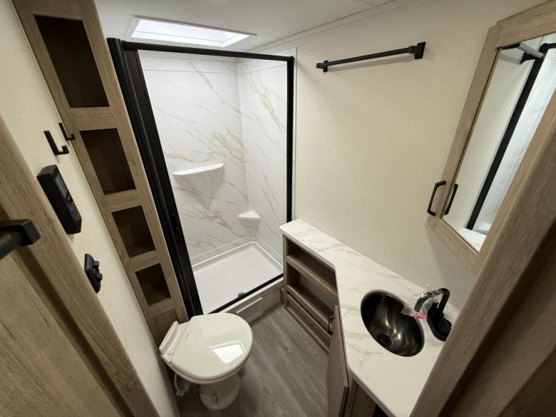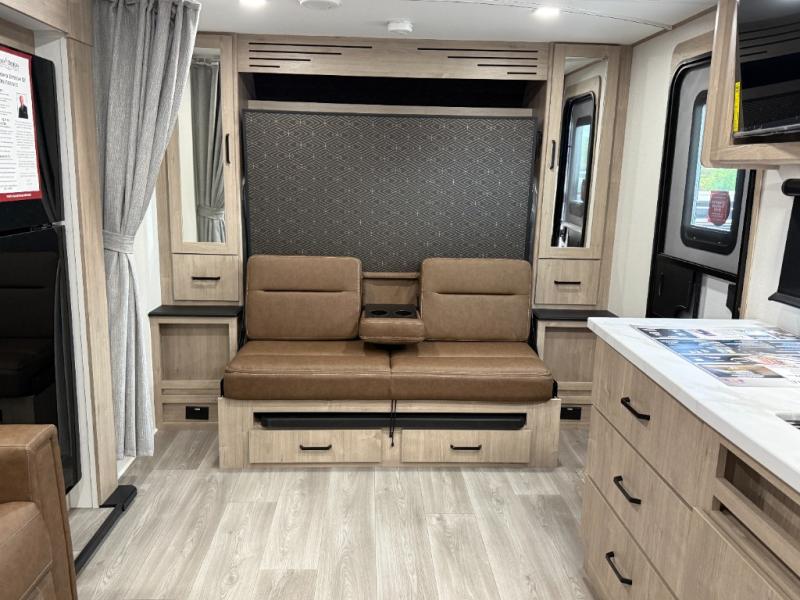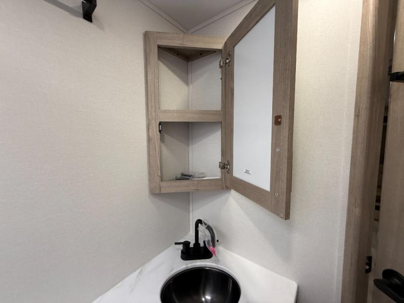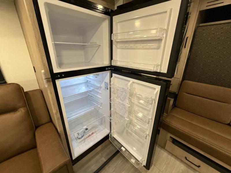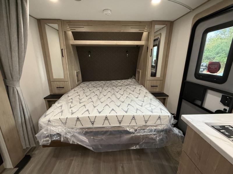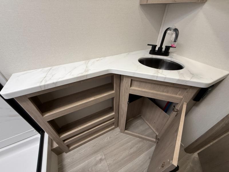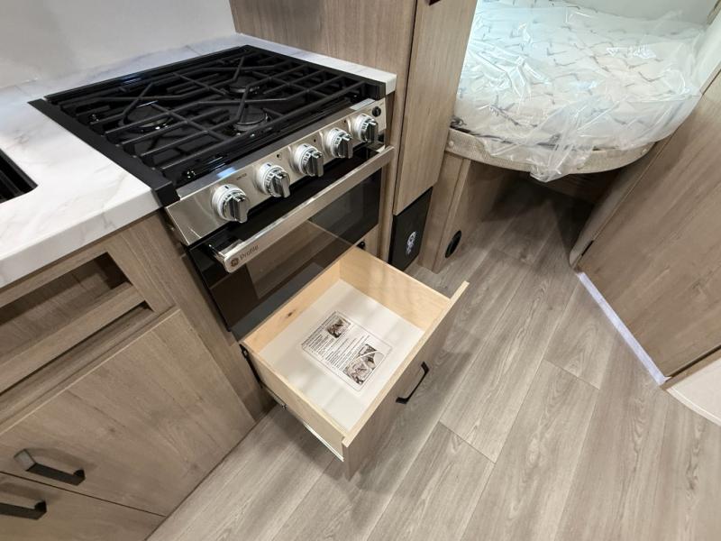 This travel trailer has everything you need for a great vacation! You will never miss home when you see all of the amenities included on this trailer. There is a full bathroom for easy morning routines, a set of 47" x 76" double over double-size bunks with privacy curtains for compact sleeping, a U-shaped dinette for meal times, and a full kitchen with all of the appliances needed for filling meals. You could even switch out the dinette for an optional theater dinette. The front Murphy bed not only provides versatility with a bed to sleep on at night, and a seating area during the day, but also a removable interior/exterior table. In addition to all of that, you'll also find an outdoor griddle and 1.6 cu. ft. refrigerator that you can use when the weather is nice. The unobstructed pass-through storage will be able to store your fishing poles and sports equipment while you travel.