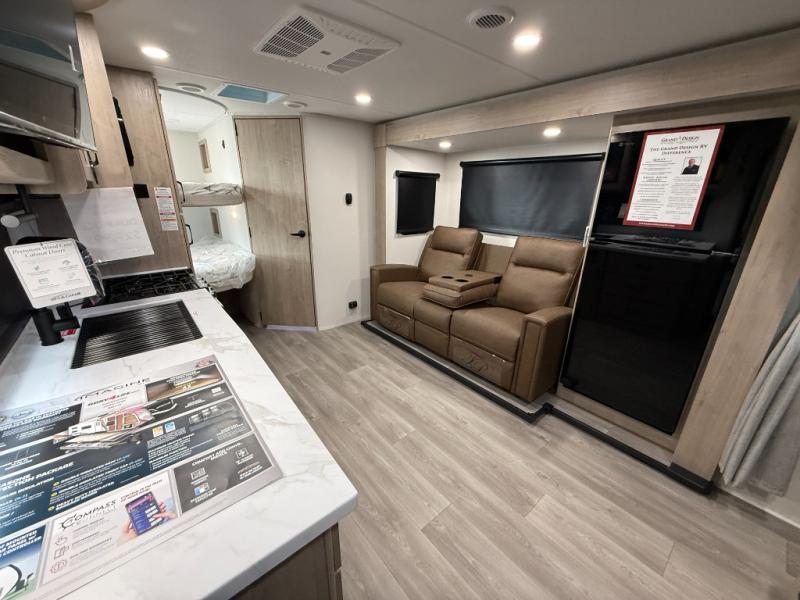 Let your imagination run wild with the possibilities that the Grand Design Imagine XLS travel trailer can provide! The Imagine XLS has been built with oversized tank capacities, an extra-large 2" fresh water drain valve, a ducted A/C system, a power tongue jack, and a heated and enclosed underbelly with suspended tanks. There is a designated heat duct to the subfloor and a residential ductless heating system throughout. For outdoor adventures, the electric awning with LED lights will enable you to stay protected, and the Tuff-Ply pass-thru flooring will withstand your many adventures. You will also love the XLS Solar Package that comes with a 200W roof mounted solar panel, a 40 Amp charge controller, a 12V 10 cu. ft. refrigerator, and roof mounted quick connect plugs!