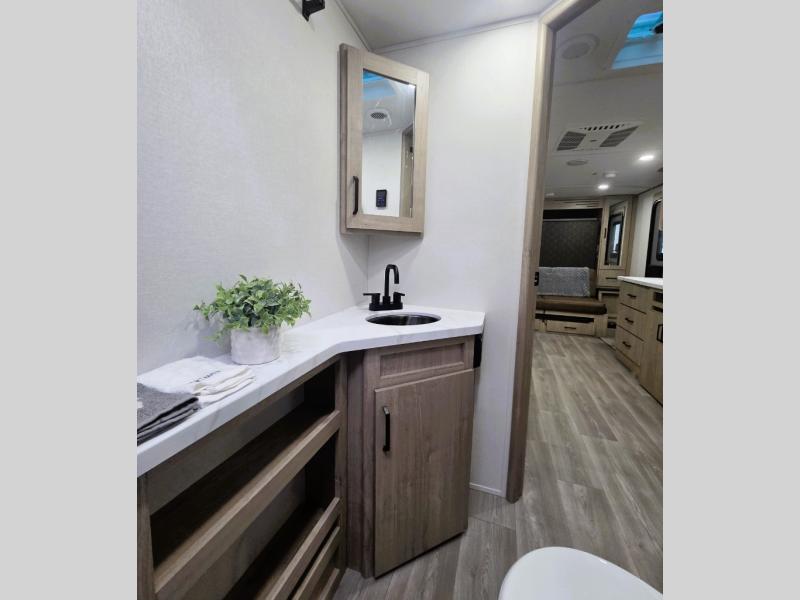 Let your imagination run wild with the possibilities that the Grand Design Imagine XLS travel trailer can provide! The Imagine XLS has been built with oversized tank capacities, an extra-large 2" fresh water drain valve, a ducted A/C system, a power tongue jack, and a heated and enclosed underbelly with suspended tanks. There is a designated heat duct to the subfloor and a residential ductless heating system throughout. For outdoor adventures, the electric awning with LED lights will enable you to stay protected, and the Tuff-Ply pass-thru flooring will withstand your many adventures. You will also love the XLS Solar Package that comes with a 200W roof mounted solar panel, a 40 Amp charge controller, a 12V 10 cu. ft. refrigerator, and roof mounted quick connect plugs!