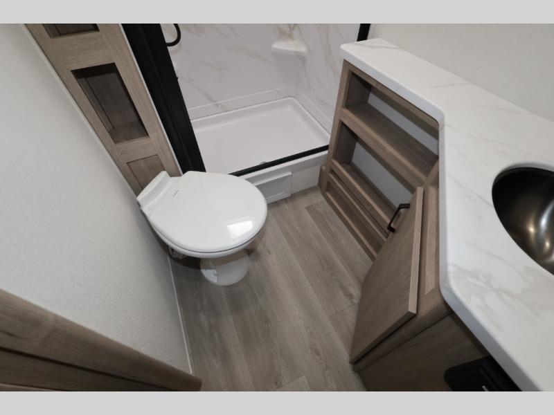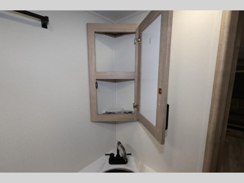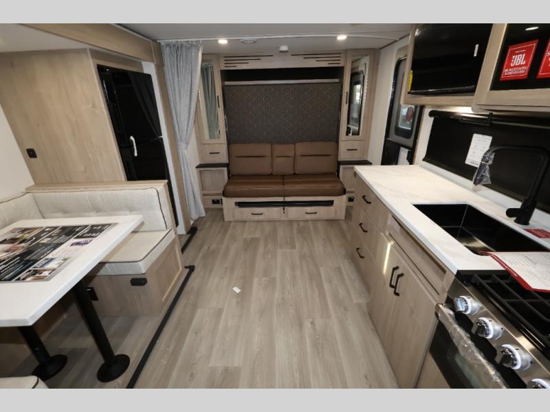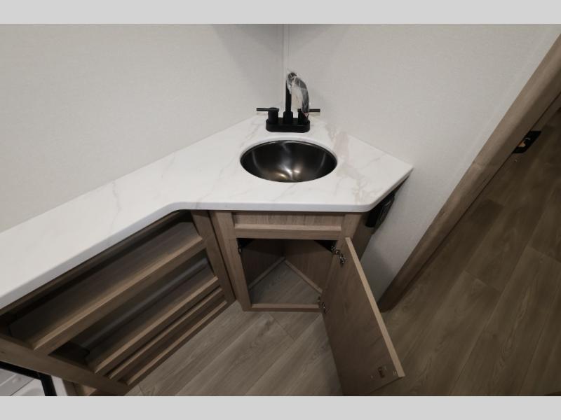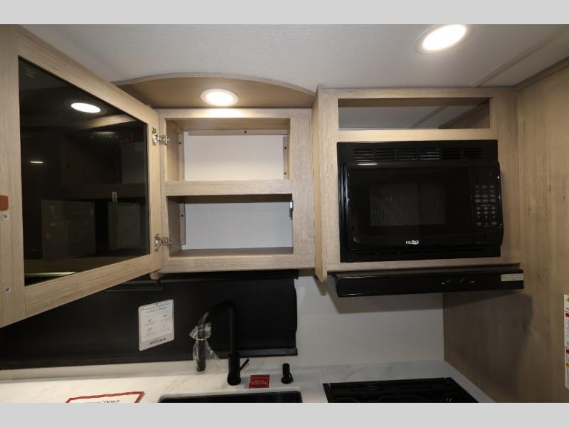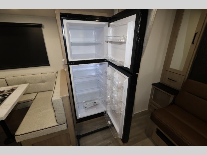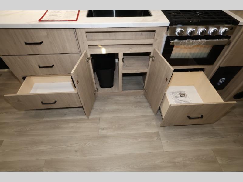 This travel trailer has everything you need for a great vacation! You will never miss home when you see all of the amenities included on this trailer. There is a full bathroom for easy morning routines, a set of 47" x 76" double over double-size bunks with privacy curtains for compact sleeping, a U-shaped dinette for meal times, and a full kitchen with all of the appliances needed for filling meals. You could even switch out the dinette for an optional theater dinette. The front Murphy bed not only provides versatility with a bed to sleep on at night, and a seating area during the day, but also a removable interior/exterior table. In addition to all of that, you'll also find an outdoor griddle and 1.6 cu. ft. refrigerator that you can use when the weather is nice. The unobstructed pass-through storage will be able to store your fishing poles and sports equipment while you travel.