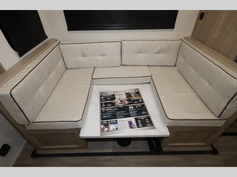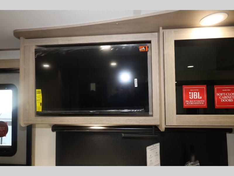 Let your imagination run wild with the possibilities that the Grand Design Imagine XLS travel trailer can provide! The Imagine XLS has been built with oversized tank capacities, an extra-large 2" fresh water drain valve, a ducted A/C system, a power tongue jack, and a heated and enclosed underbelly with suspended tanks. There is a designated heat duct to the subfloor and a residential ductless heating system throughout. For outdoor adventures, the electric awning with LED lights will enable you to stay protected, and the Tuff-Ply pass-thru flooring will withstand your adventures. You will also love the XLS Solar Package that comes with a 200W roof mounted solar panel, a 30 Amp charge controller, a 12V 10 cu. ft. refrigerator, and roof mounted quick connect plugs!