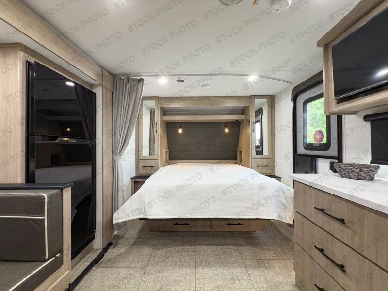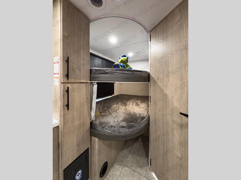 This travel trailer has everything you need for a great vacation! You will never miss home when you see all of the amenities included on this trailer. There is a full bathroom for easy morning routines, a set of 47" x 76" double over double-size bunks with privacy curtains for compact sleeping, a U-shaped dinette for meal times, and a full kitchen with all of the appliances needed for filling meals. You could even switch out the dinette for an optional theater dinette. The front Murphy bed not only provides versatility with a bed to sleep on at night, and a seating area during the day, but also a removable interior/exterior table. In addition to all of that, you'll also find an outdoor griddle and 1.6 cu. ft. refrigerator that you can use when the weather is nice. The unobstructed pass-through storage will be able to store your fishing poles and sports equipment while you travel.