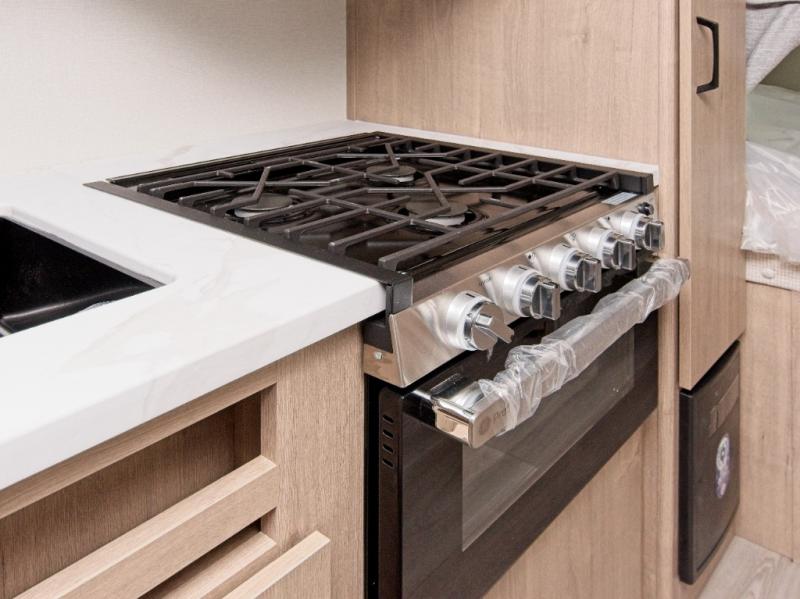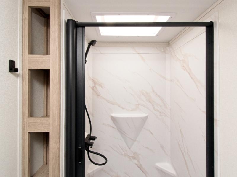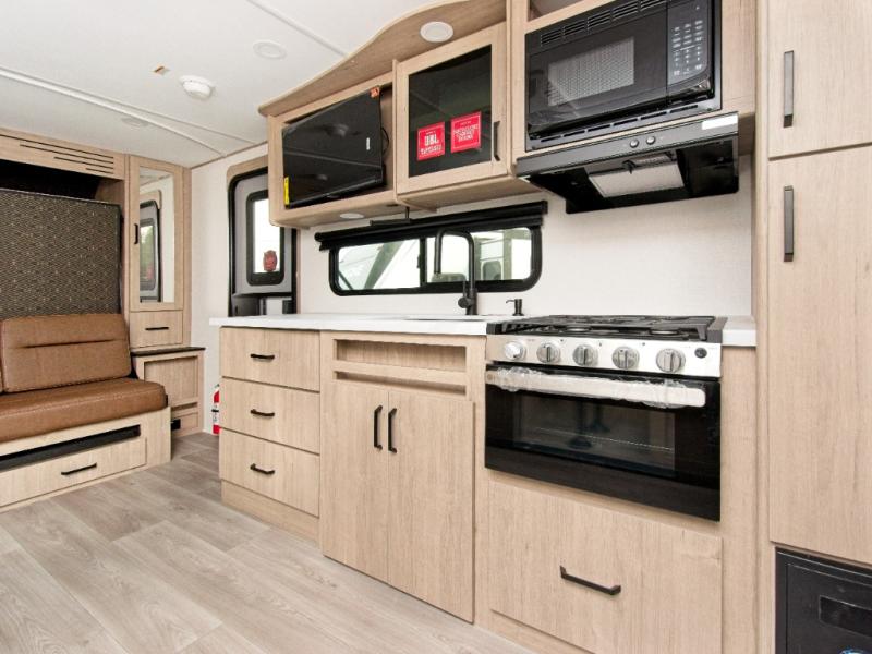 Take your cooking outside with the exterior griddle and refrigerator, perfect for enjoying meals in the fresh air. The unobstructed pass-through storage gives you room for fishing poles, outdoor gear, and sports equipment, while the exterior spray port makes cleanup quick and easy after a day of adventure.
