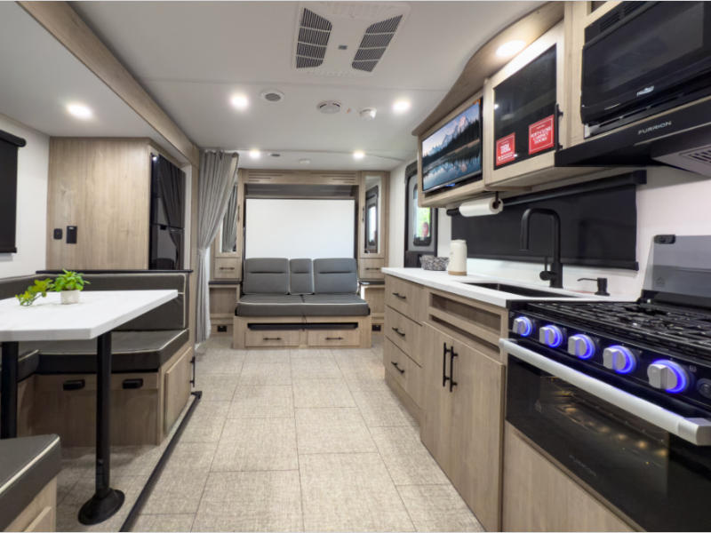 Full Kitchen & Outdoor Cooking – Inside, you’ll find all the essentials for great meals, and outside, enjoy an outdoor griddle and 1.6 cu. ft. refrigerator for alfresco cooking.