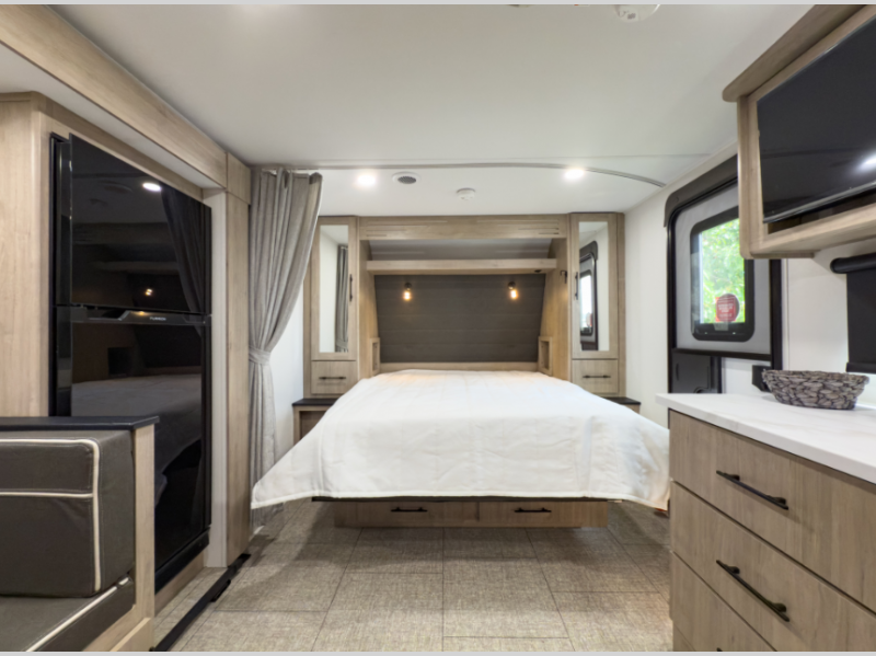 Double-Size Bunks – The 47" x 76" bunks are perfect for kids, guests, or extra storage, complete with privacy curtains for added comfort.