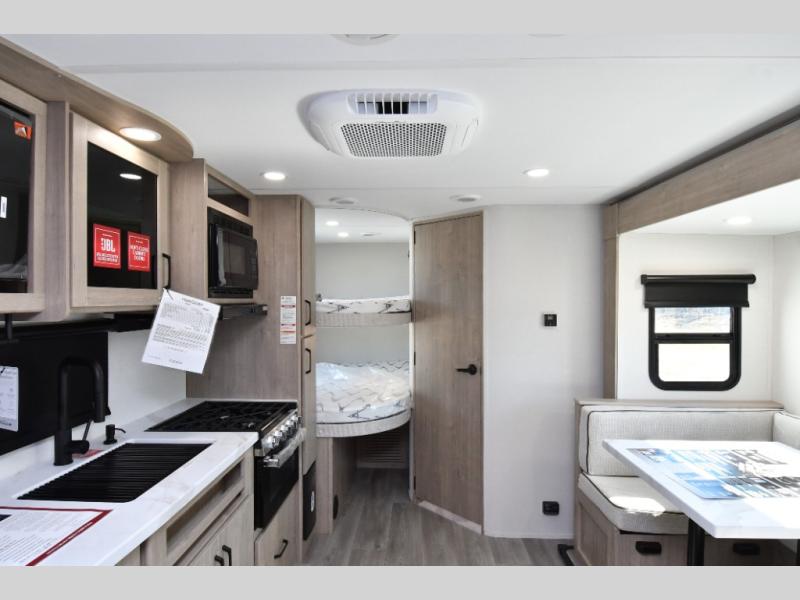 Adventure comes easy with the new 2026 Grand Design Imagine XLS 21MBE, a smartly designed travel trailer that maximizes comfort without sacrificing towability. Inside, the warm Brynlee Teak interior sets the tone for a flexible living space featuring a front Murphy bed that easily converts from comfortable sleeping to daytime seating. Double-size bunk beds with privacy curtains give kids or guests their own space, while the booth dinette provides a cozy spot for meals, games, or planning the next day’s adventures.