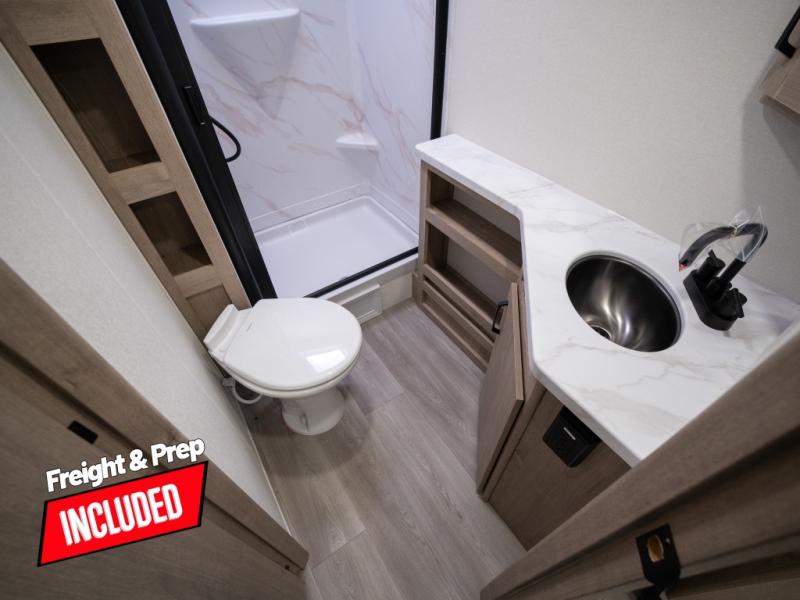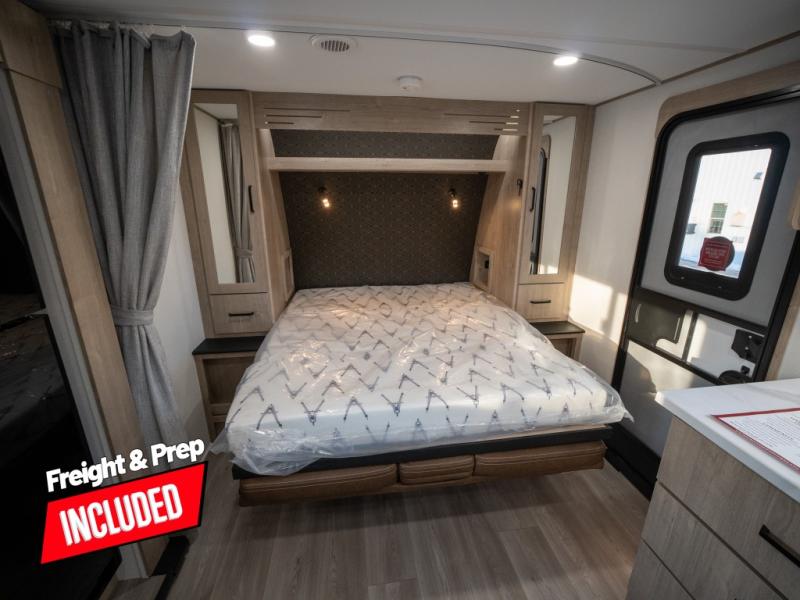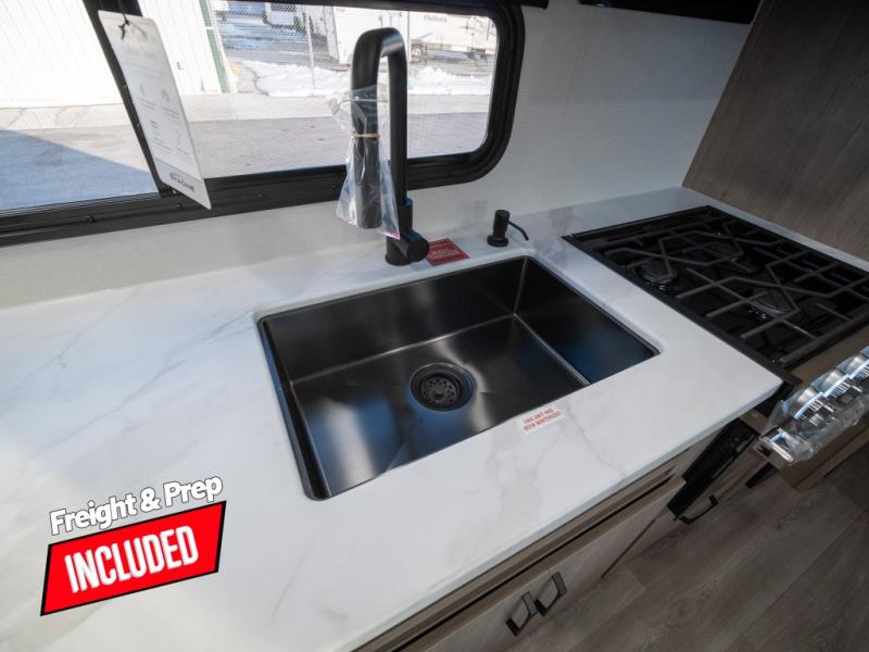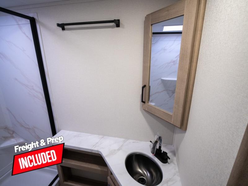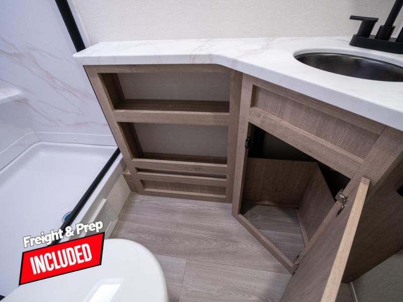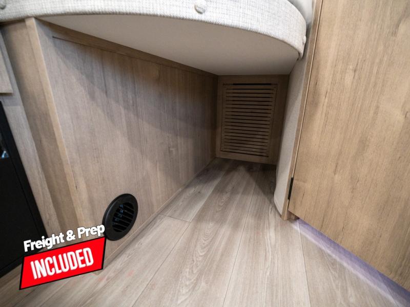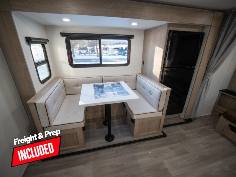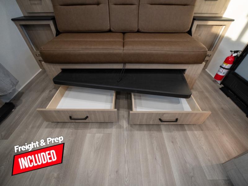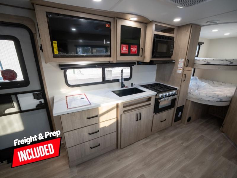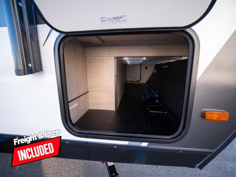 This travel trailer has everything you need for a great vacation! You will never miss home when you see all of the amenities included on this trailer. There is a full bathroom for easy morning routines, a set of 47" x 76" double over double-size bunks with privacy curtains for compact sleeping, a U-shaped dinette for meal times, and a full kitchen with all of the appliances needed for filling meals. You could even switch out the dinette for an optional theater dinette. The front Murphy bed not only provides versatility with a bed to sleep on at night, and a seating area during the day, but also a removable interior/exterior table. In addition to all of that, you'll also find an outdoor griddle and 1.6 cu. ft. refrigerator that you can use when the weather is nice. The unobstructed pass-through storage will be able to store your fishing poles and sports equipment while you travel.