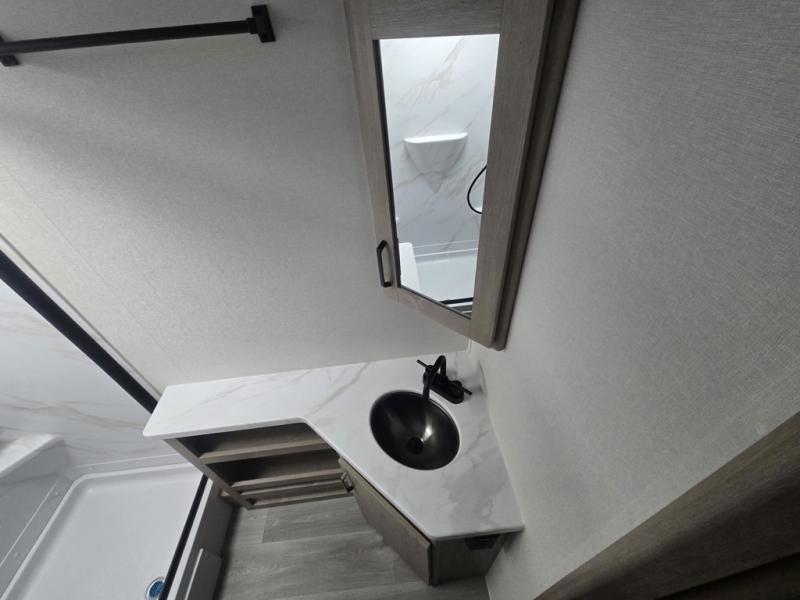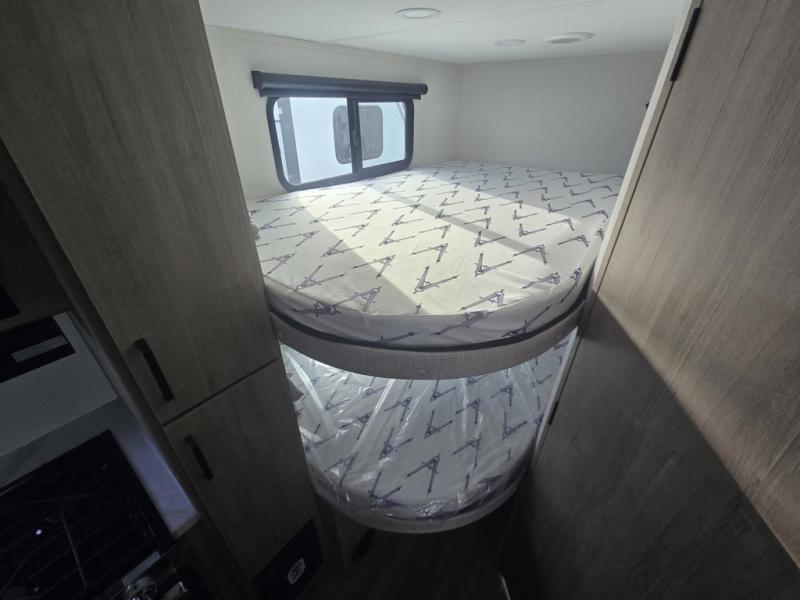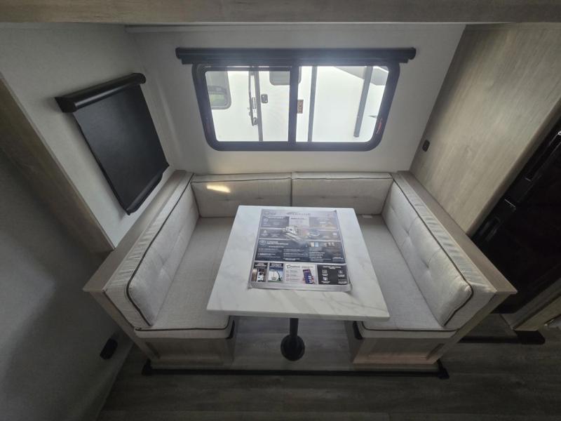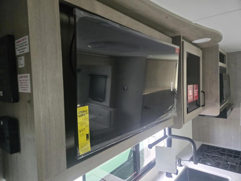 This travel trailer has everything you need for a great vacation! You will never miss home when you see all of the amenities included on this trailer. There is a full bathroom for easy morning routines, a set of 47" x 76" double over double-size bunks with privacy curtains for compact sleeping, a U-shaped dinette for meal times, and a full kitchen with all of the appliances needed for filling meals. You could even switch out the dinette for an optional theater dinette. The front Murphy bed not only provides versatility with a bed to sleep on at night, and a seating area during the day, but also a removable interior/exterior table. In addition to all of that, you'll also find an outdoor griddle and 1.6 cu. ft. refrigerator that you can use when the weather is nice. The unobstructed pass-through storage will be able to store your fishing poles and sports equipment while you travel.