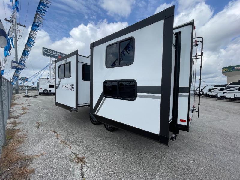 Let your imagination run wild with the possibilities that the Grand Design Imagine XLS travel trailer can provide! The Imagine XLS has been built with oversized tank capacities, an extra-large 2" fresh water drain valve, a ducted A/C system, a power tongue jack, and a heated and enclosed underbelly with suspended tanks. There is a designated heat duct to the subfloor and a residential ductless heating system throughout. For outdoor adventures, the electric awning with LED lights will enable you to stay protected, and the Tuff-Ply pass-thru flooring will withstand your many adventures. You will also love the XLS Solar Package that comes with a 180W roof mounted solar panel, a 40 Amp charge controller, a 12V 10 cu. ft. refrigerator, and roof mounted quick connect plugs!